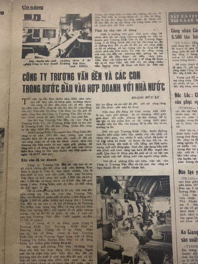 Nhựa báo Tin Sáng ngày 2/11/1977Cty Trương văn Bền & Các con , bước đầu vào hợp doanh với nhà nước 350k /0772616668