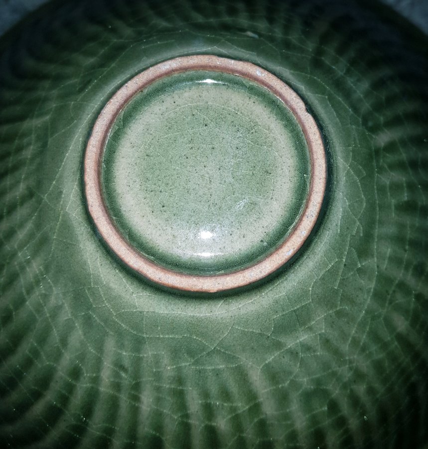 Bát Celadon men ngọc ám họa sen ngư và các họa tiết xen kẽ. bát có đường kính miệng 19cm. cao 9.5cm. lành lặn. GL950k