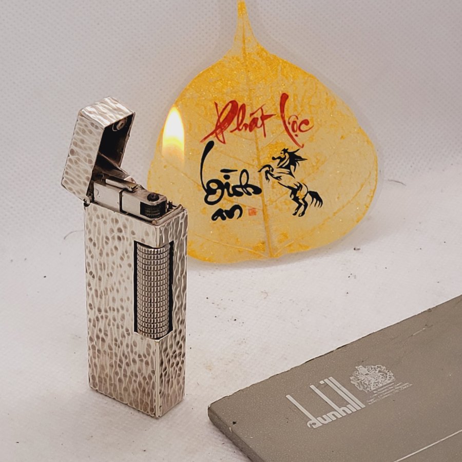 Dunhill bọc bạc phom vuông vân gõ búa rất đẹp, nguyên zin kín ga lửa rất nhạy