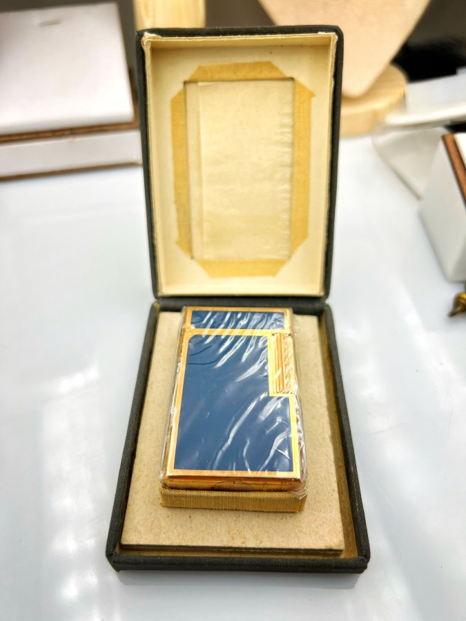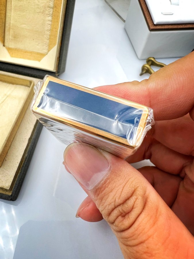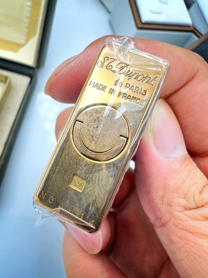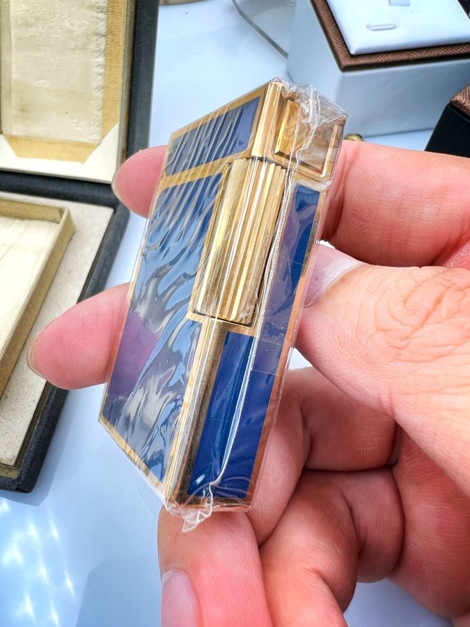 Bật lửa St.Dupont Paris 1 line phôm cao new full box vỏ bọc vàng men xanh chữ đỏ rất đẹp cho ae sưu tầm, giao thông 5.xtr❤️ Thiên 0923.12.6789