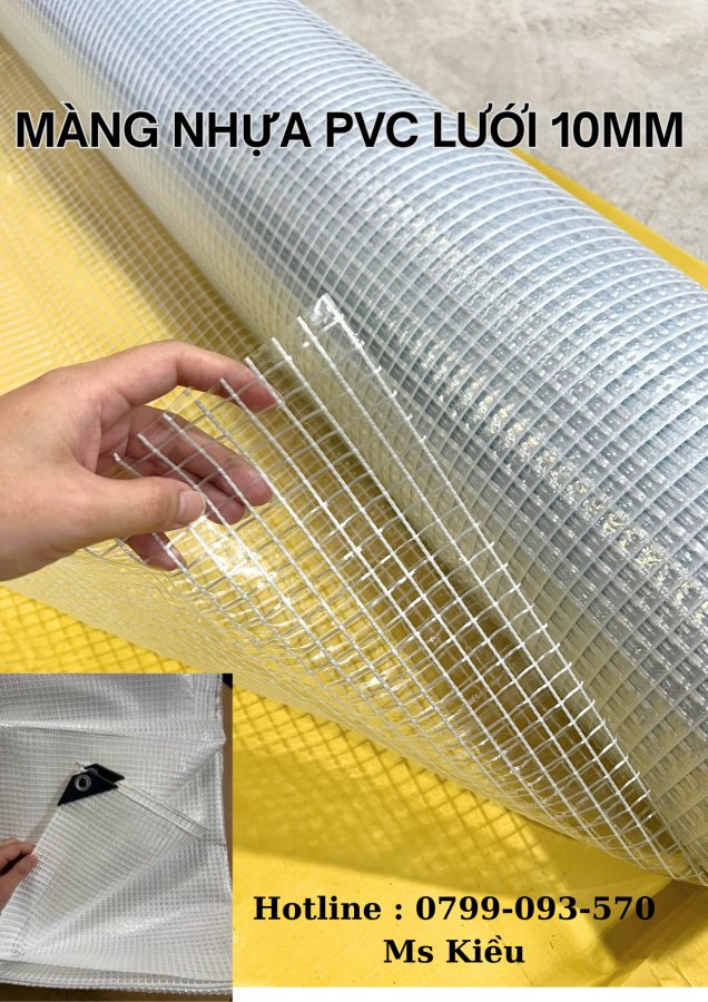 👉 Màng nhựa dẻo trong suốt kẹp lưới sợi polyester 10mm