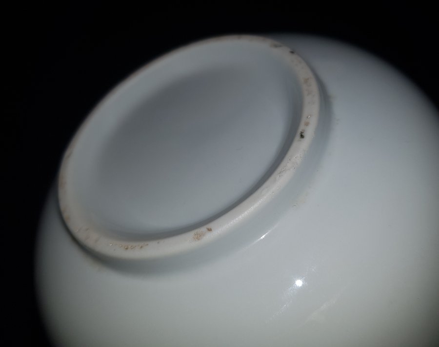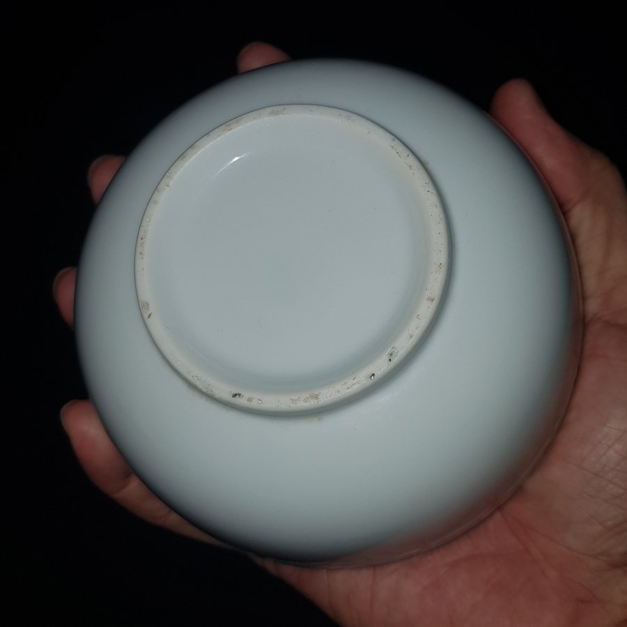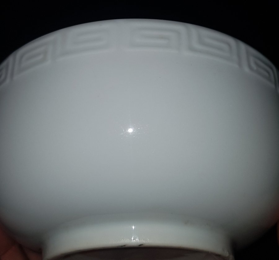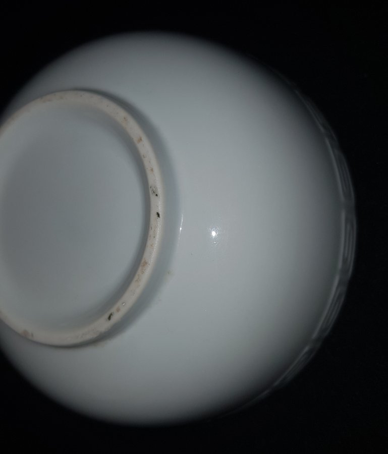 Bát sứ bạch định xưa có họa tiết triện công ở viền mép ngoài như hình. Bát có đường kính 12cm. cao 5.5cm. lành lặn.GL650k