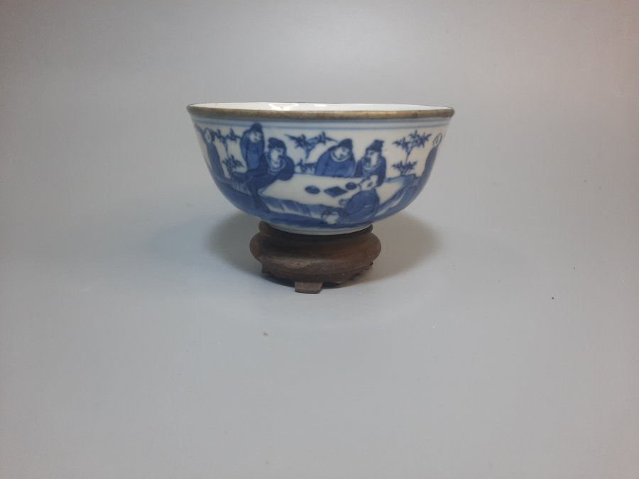 Bát vẽ trúc lâm thất hiền, đk 12cm, hiệu nổi phủ