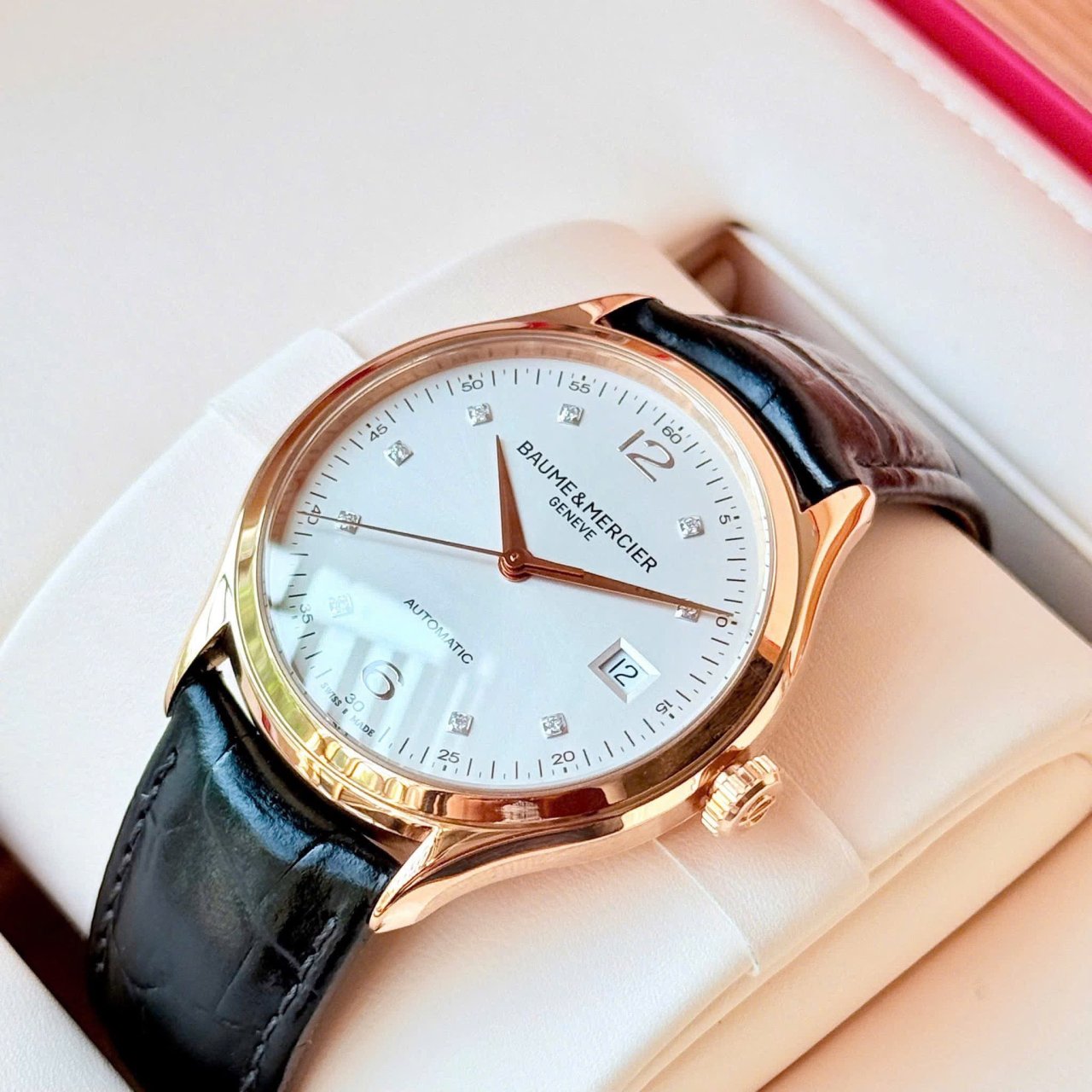 Cập bến baumer vàng khối siêu hiếm!!!Baume & Mercier Clifton 10194 Automatic Watch 39- size 39 mm- kính shaphie khối- bộ máy automatic- toàn thân vàng hồng 18k New hơn 200tr