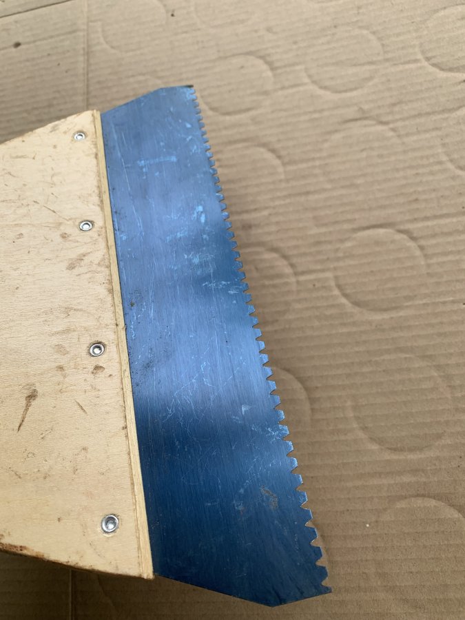 Sản phẩm còn mới chưa qua sử dụng, loại bay răng cưa dùng trét hồ hoặc keo dán gạch cho đồng đều. Cám ơn đã xem tin.