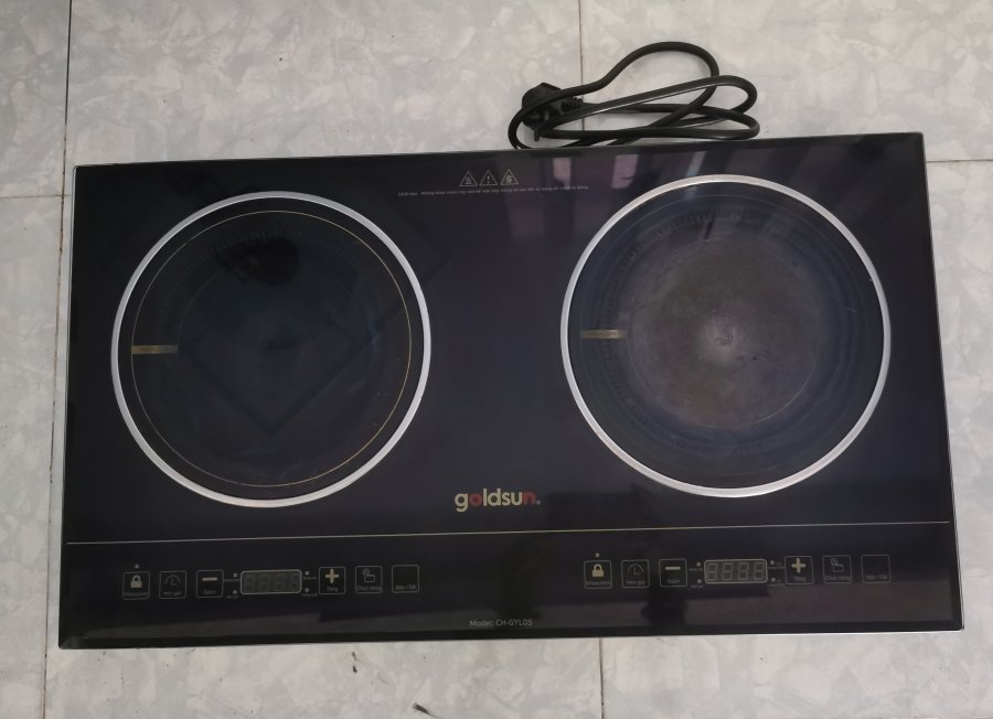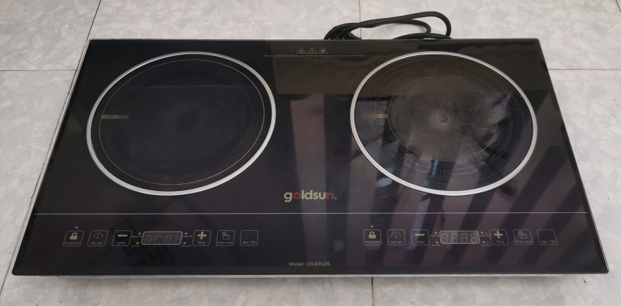 Nhà dư nên bán ạ. Bếp điện từ và hồng ngoại Goldsun đã qua sử dụng nhưng bếp vẫn dùng tốt. Cảm ứng điều khiển. Kích thước: 41,5cm x 73,5cm. Nặng 8,5 kg. Công suất 3800W (Bếp từ 1800W, Bếp hồng ngoại 2000W). Có tính năng hẹn giờ, khóa phím, chuyển đổi nhiệt độ/ công suất (điện từ) và 02 vòng nhiệt/ 01 vòng nhiệt (hồng ngoại). Bên hồng ngoại có vết nứt do vô tình làm rớt hủ thủy tinh trên kệ vào. Vẫn sử dụng được hoặc thay thế kính ở phần hồng ngoại. Em ở Bình Tân, Hồ Chí Minh.