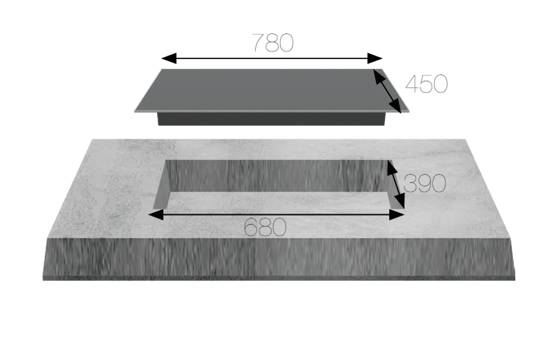 Cắt đá: 680 x 390 mm