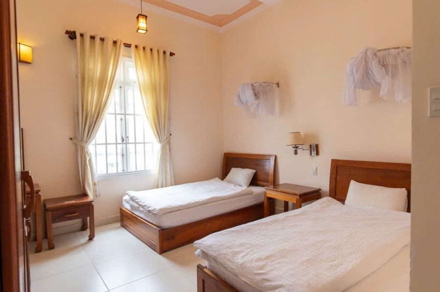 - Diện tích khuôn viên: gần 486 mét vuông: 22m mặt tiền đường sâu gần 22m; diện tích sử dụng là 850 mét vuông bao gồm: một hầm một trệt hai lầu và một gác lửng: tổng cộng 17 phòng ngủ (14 phòng cho khách du lịch, 3 phòng nội bộ trên gác), 16 phòng tắm, một phòng khách, một nhà hàng phục vụ ăn uống, một bar và một bếp.