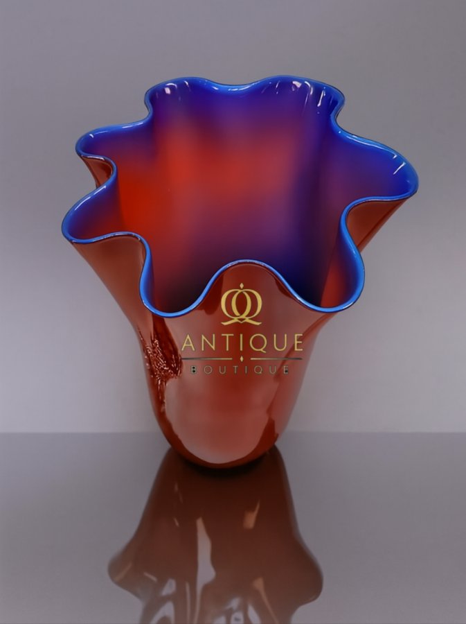 Bình Art thủy tinh thổi. Viền xanh vành trong. Sx: Murano Italy