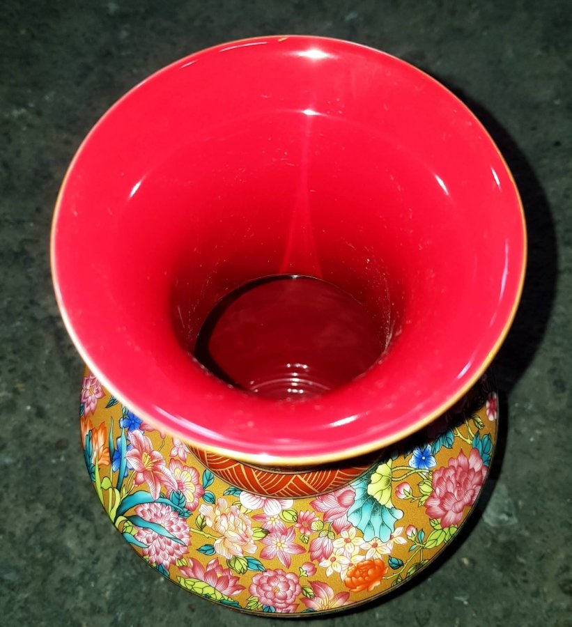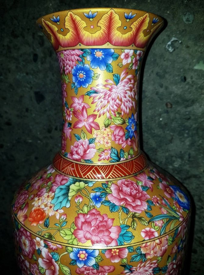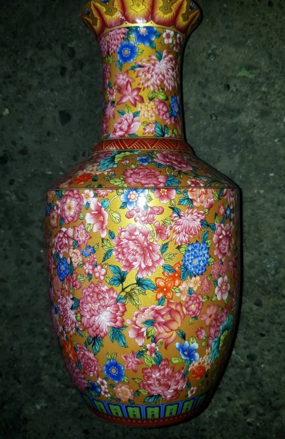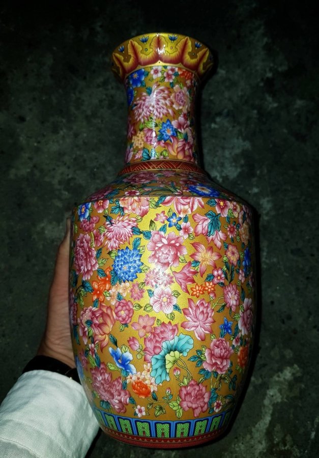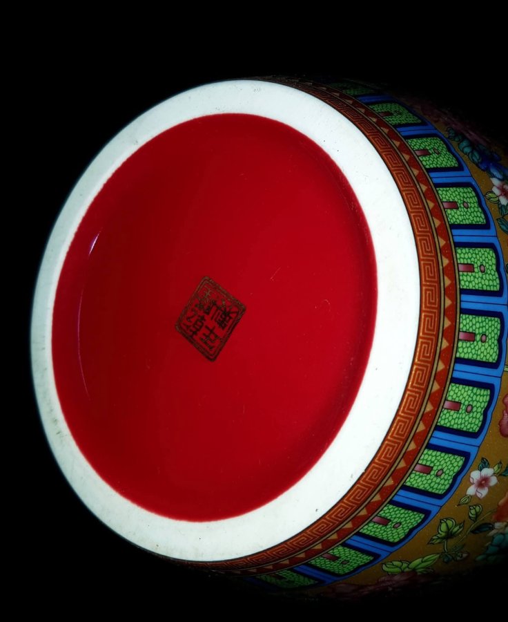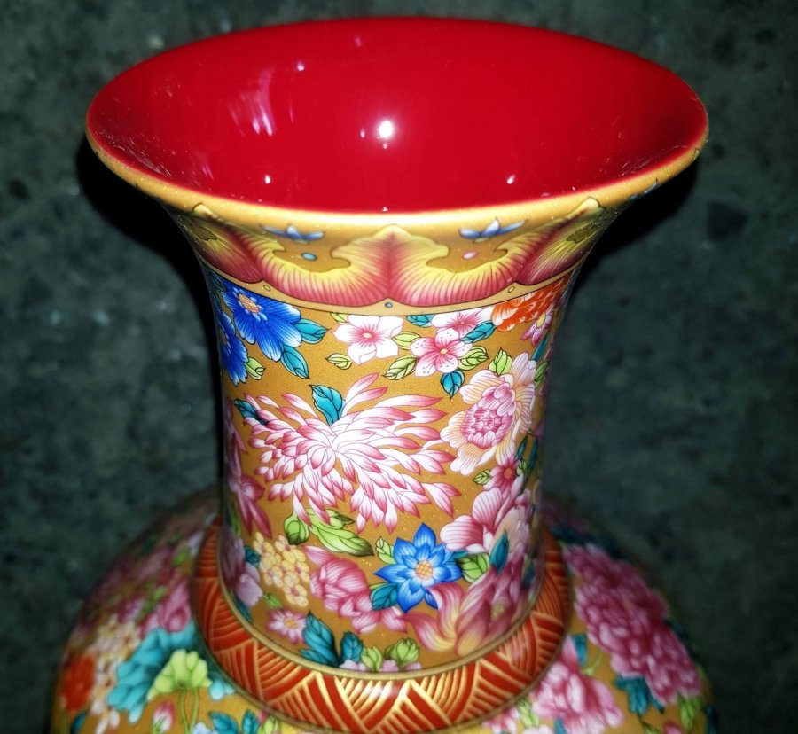 Bình bách hoa dáng hiếm trong lòng là men thúy hồng cao thổng thể 30.5cm. miệng 9cm. vòng bụng 48.5cm. Lành lặn. GL1850k