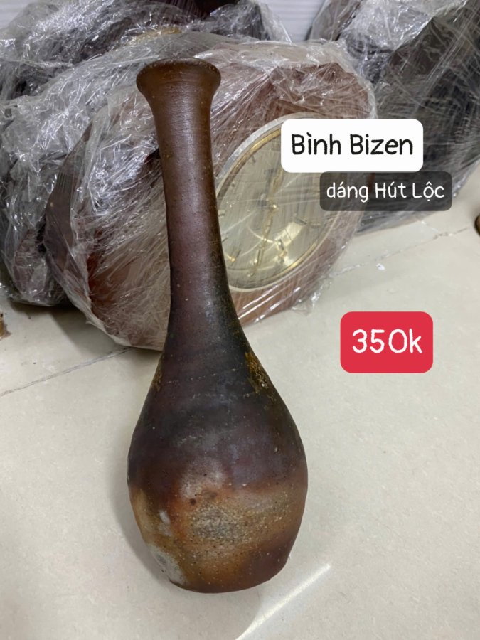 Bình Bizen dáng Hút Lộc triện đáy