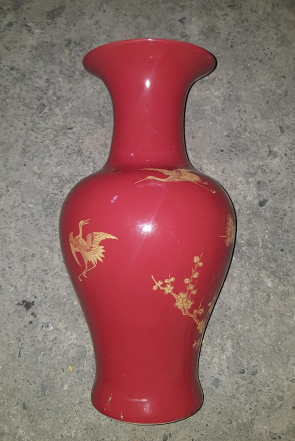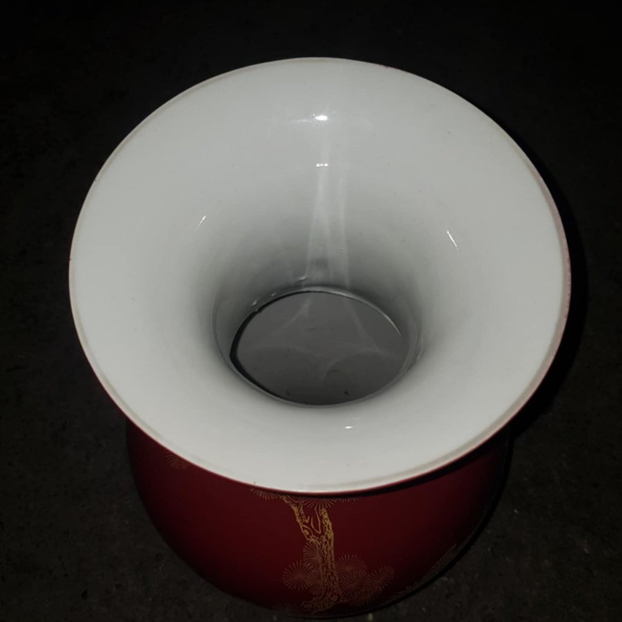 Kính mời quý vị cùng thưởng lãm và giao lưu bình Tùng Hạc diên niên được vẽ vàng trên nền men hồng thổ. Bình với dáng Bá Huê Tôn chứ danh cao tổng thể 45cm. vòng bụng 75cm. Bình lành lặn già đồ. GL2950k