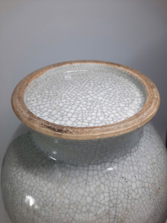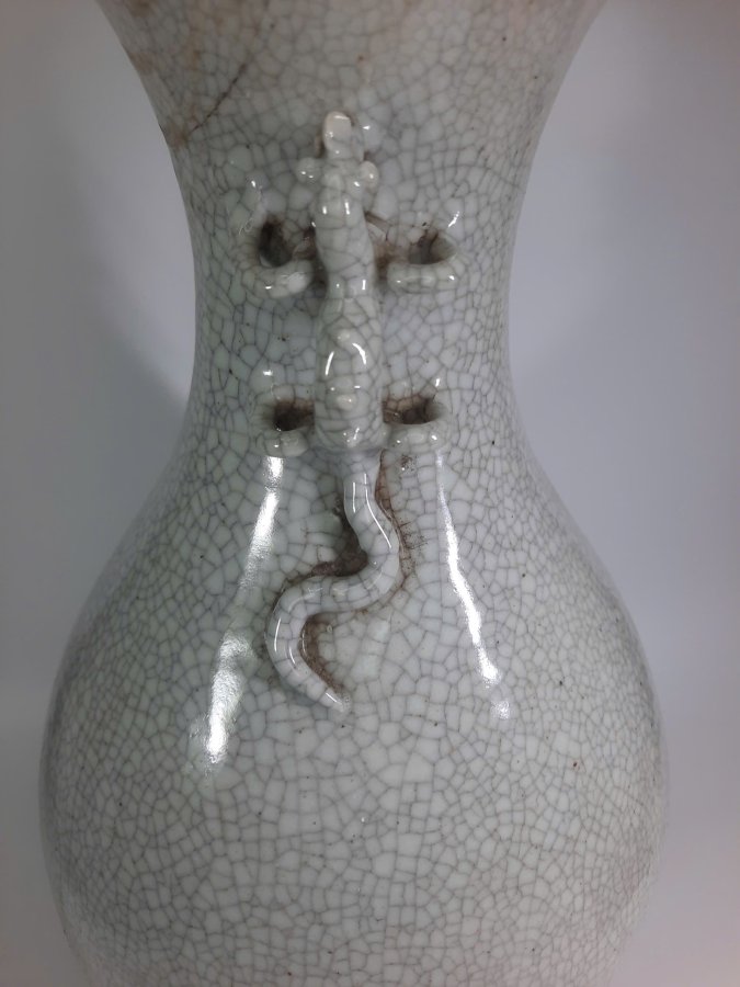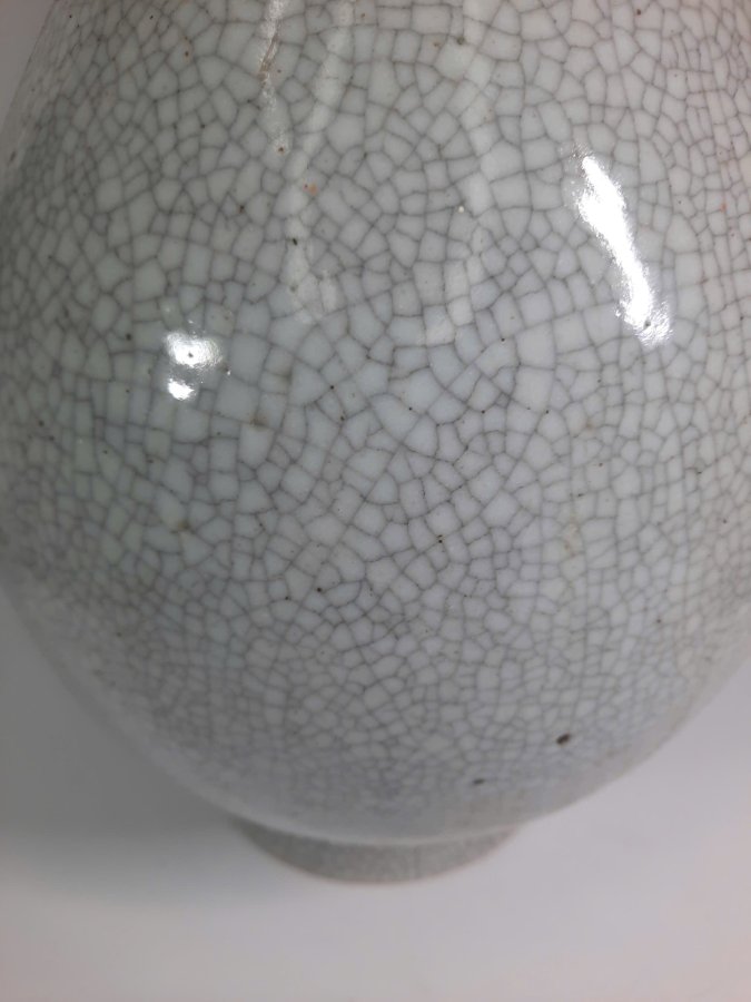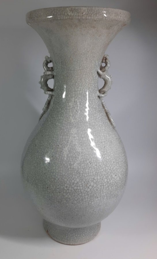 Bình dáng chân váy miệng đấu, hai quai đeo Giảo Long có khoen, men rạn dòng gốm Ru đơn sắc