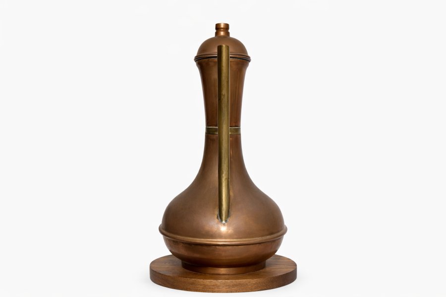 Chiếc bình đồng BDG 515 mang dáng vẻ cổ điển với thiết kế mềm mại, tay cầm uốn cong và vòi dài thanh thoát. Thân bình được chế tác từ đồng nguyên chất, phủ màu nâu ánh kim sang trọng, đặt trên đế gỗ tròn tạo nên tổng thể hài hòa và tinh tế.