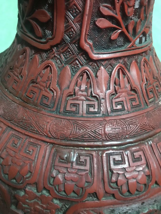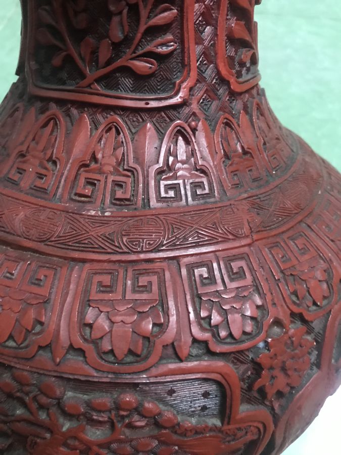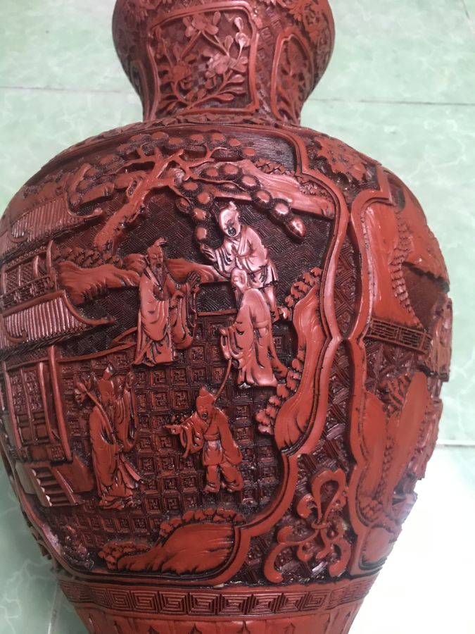 Bình gỗ Chú Sa chuẩn cổ chạm kín rất đep.cao 48cm. Dày nặng.