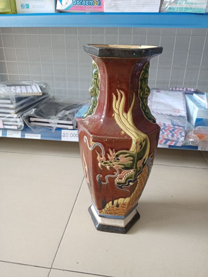 Bình gốm Biên hoà lục giác hình rồng. Giá 700k