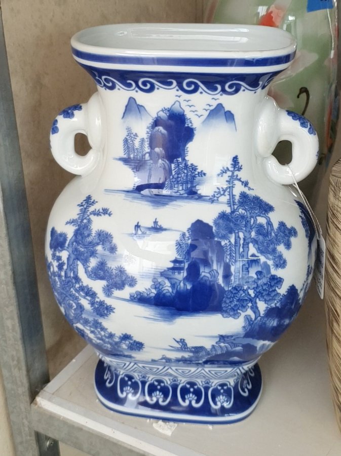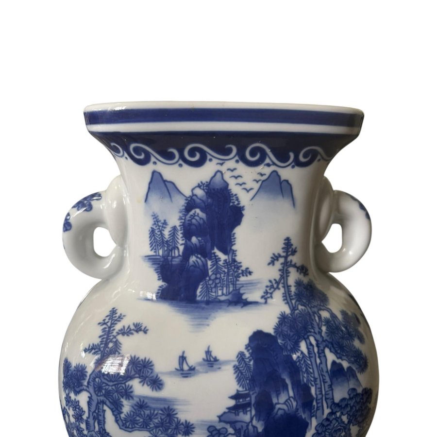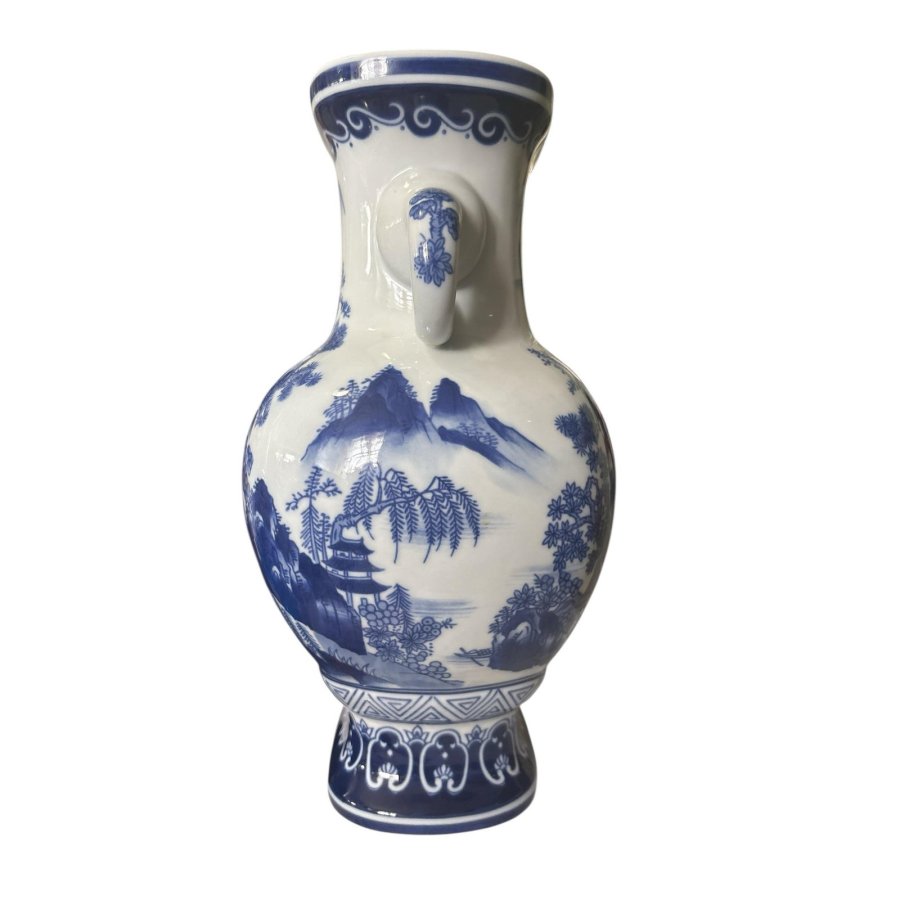 Bình gốm sứ xanh lam , trắng phong cách Chinoiserie Bình hoa sứ xanh trắng phong cách Châu Á cổ điển Chinoiserie. Kích thước: cao 30,5cm, ngang 20cm, sâu 16cm