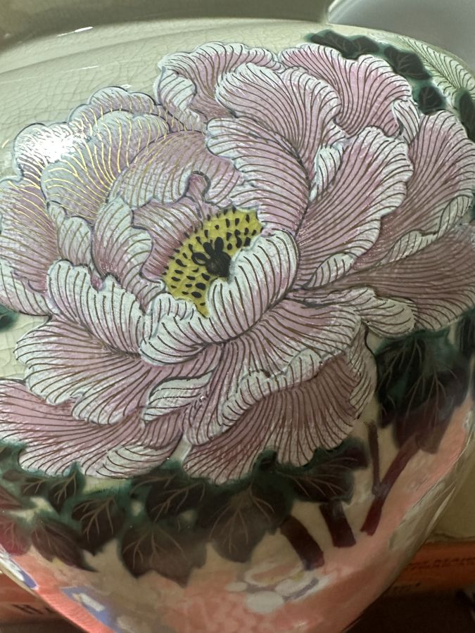 Bình hoa men rạn vẽ tay cực đẹp của nhật viền vàng . Bình to đẹp hoạ tiết bông hoa nổi gờ lên vô cùng độc đáo có giá trị sưu tập . Mộc triẹn đầy đủ ạ . Ae sành đồ nhìn là biết ạ Cao 27. Dk 23