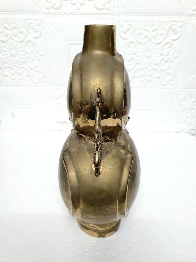 Bình hồ lô bằng đồng, hàng xưa của Châu Âu, cực kỳ nặng tay, cao 29 cm, vòng bụng 17 cm, cầm rất nặng tay, thích hợp sưu tầm. Cám ơn cả nhà đã xem tin