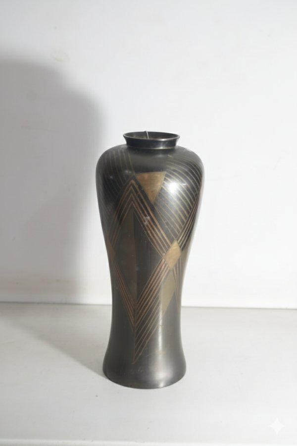Bình hoa bằng đồng cũ với họa tiết hình học