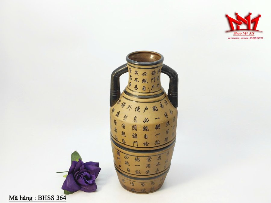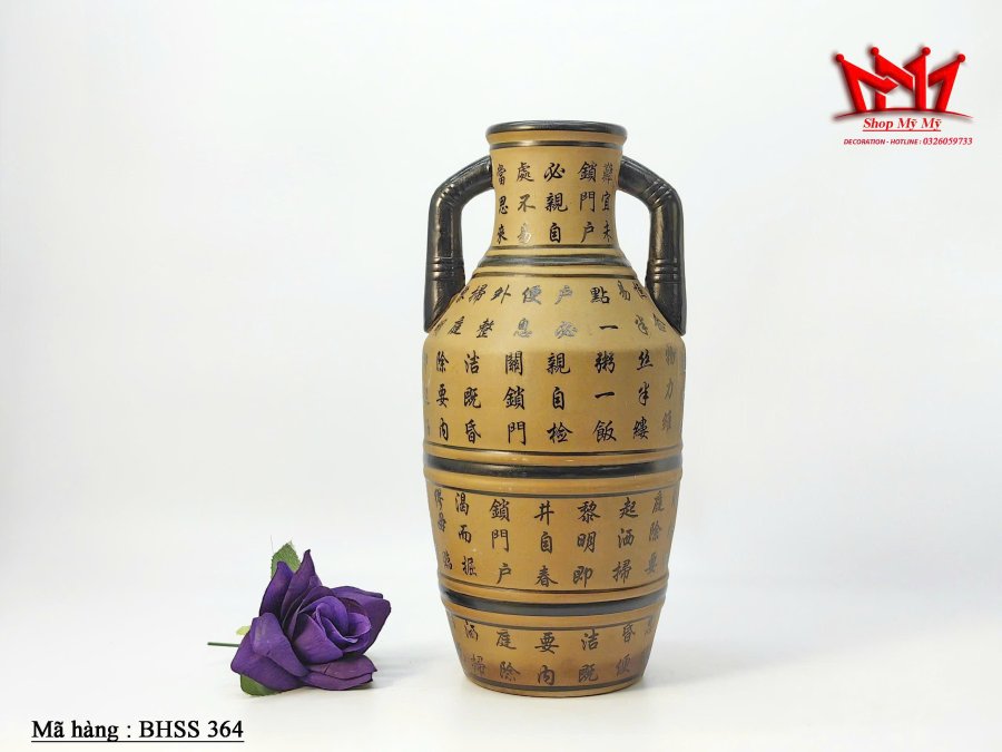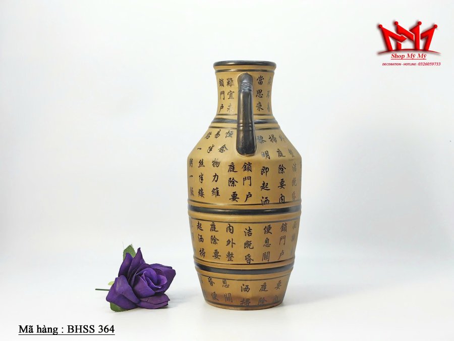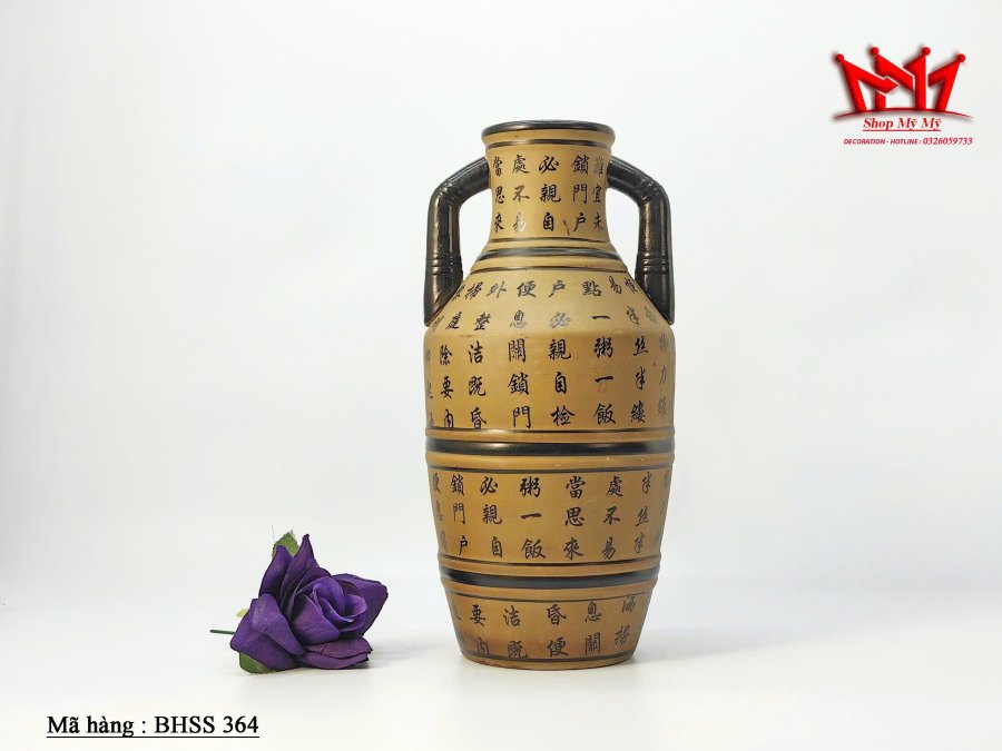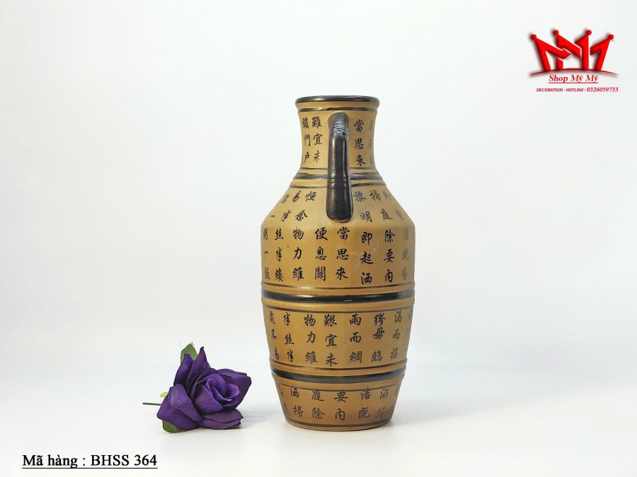 Bình hoa bằng gốm trên thân bình có chữ viết độc đáo