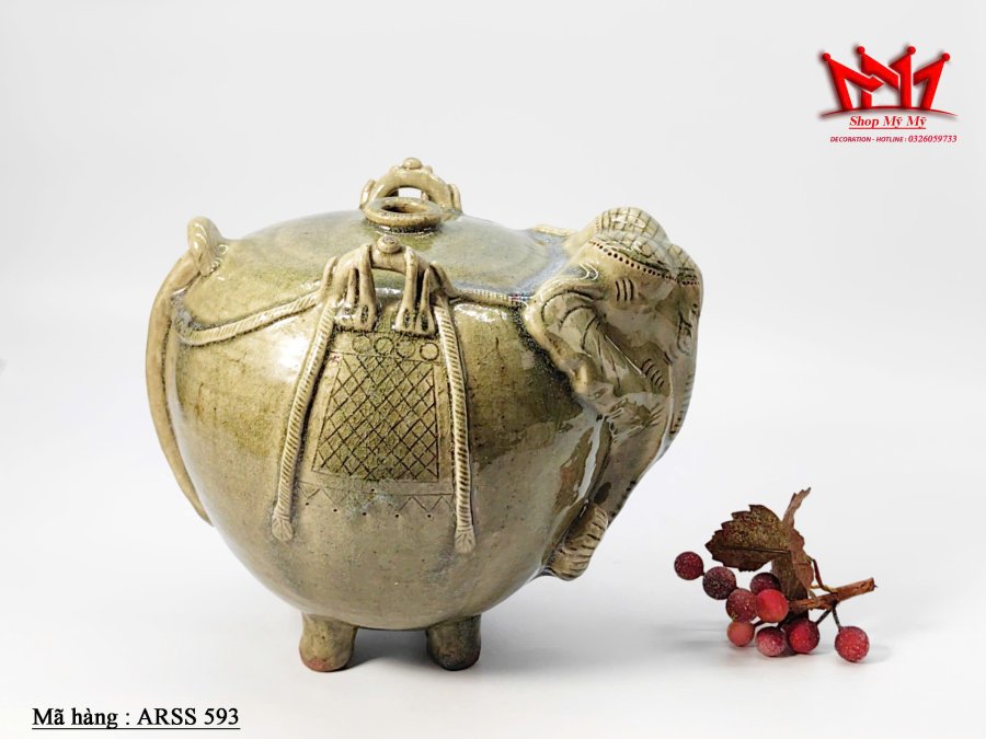 Bình hoa bằng sành sứ hình con voi nét đẹp độc đáo