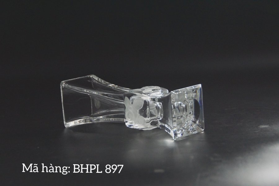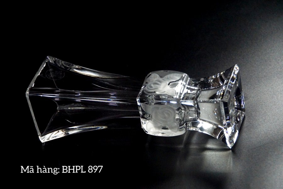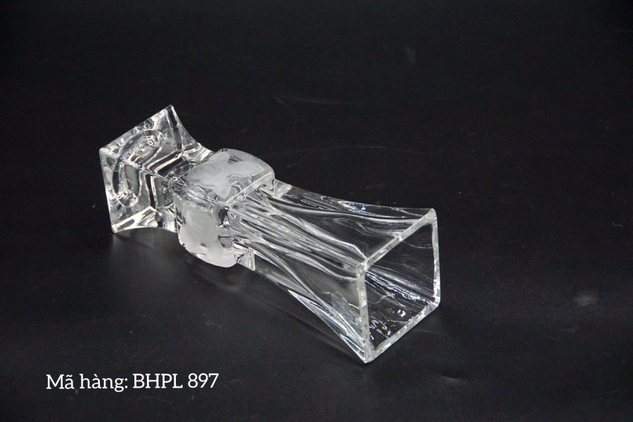 Bình hoa pha lê 4 cạnh với bông hồng mờ.Bohemia có nguồn gốc từ Cộng hòa Séc. Kích thước: Cao 21.5 cm, rộng 7 cm, nặng 1.05 kg.Giá: 890.000