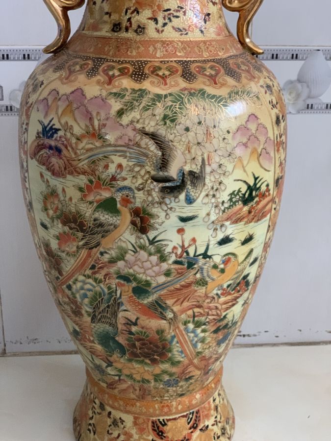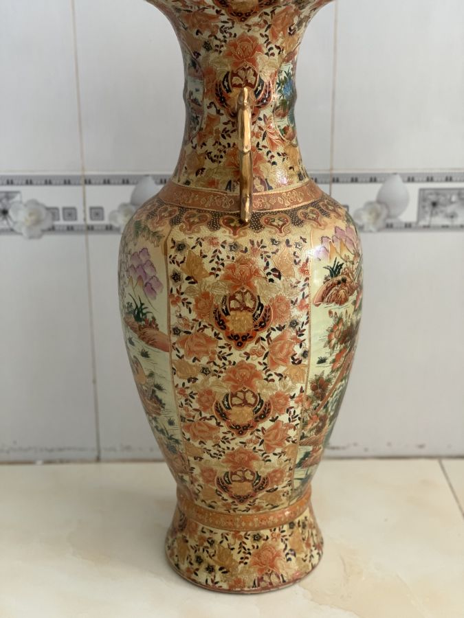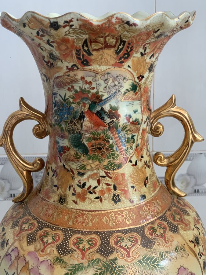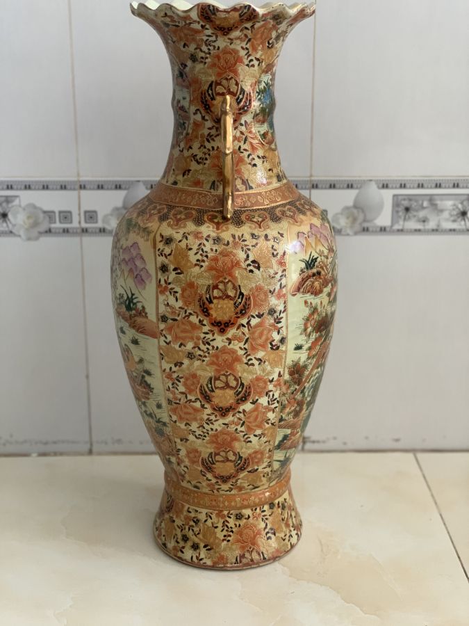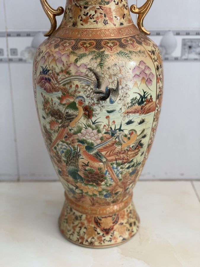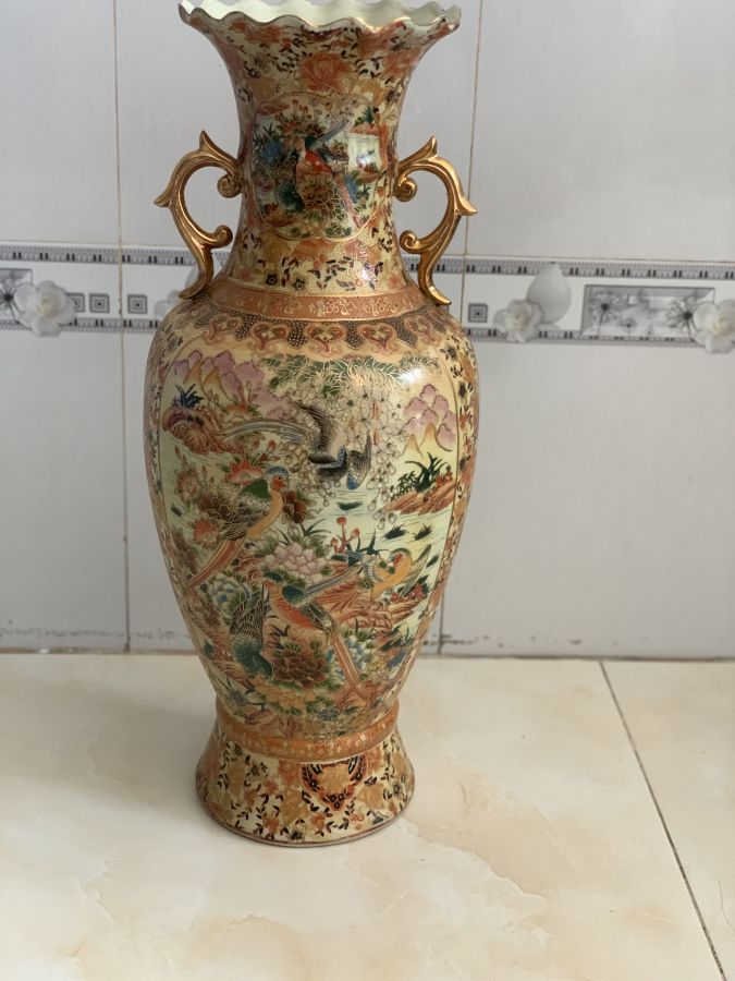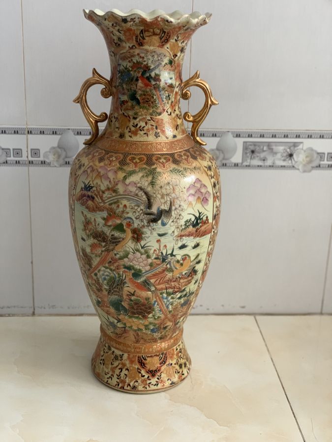 Còn bình hoa trang trí Satsuma từ Nhật về . -vẽ thủ công sắc xảo tranh hoa chim. -Bình cao 61.5 cm * miệng 19.5cm* hoành 43cm