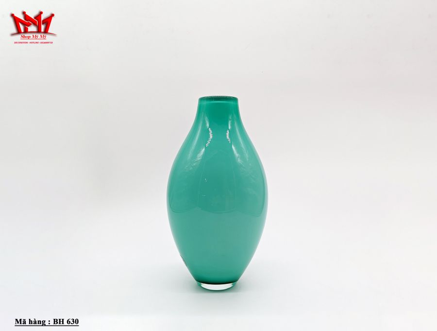 Bình hoa thủy tinh cao cấp màu xanh lục lam của Ý
