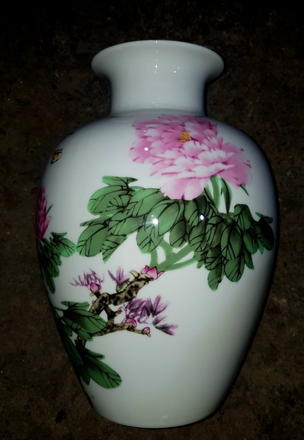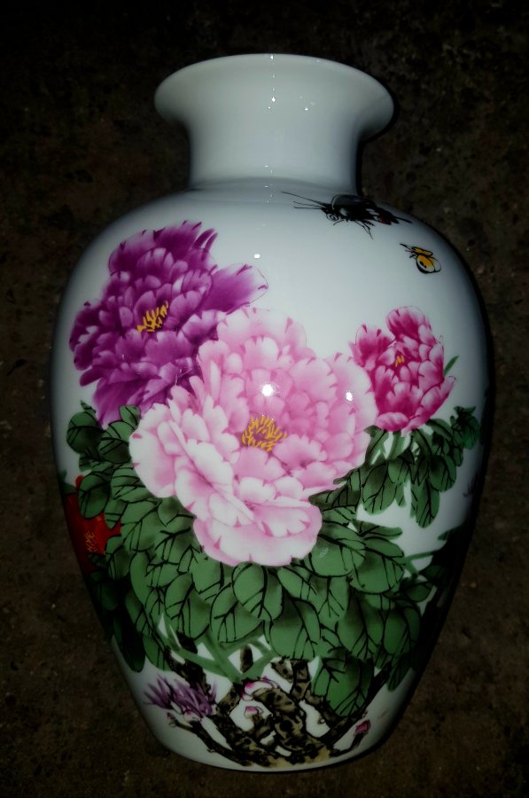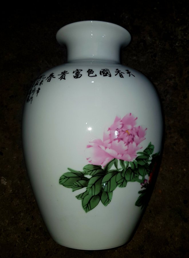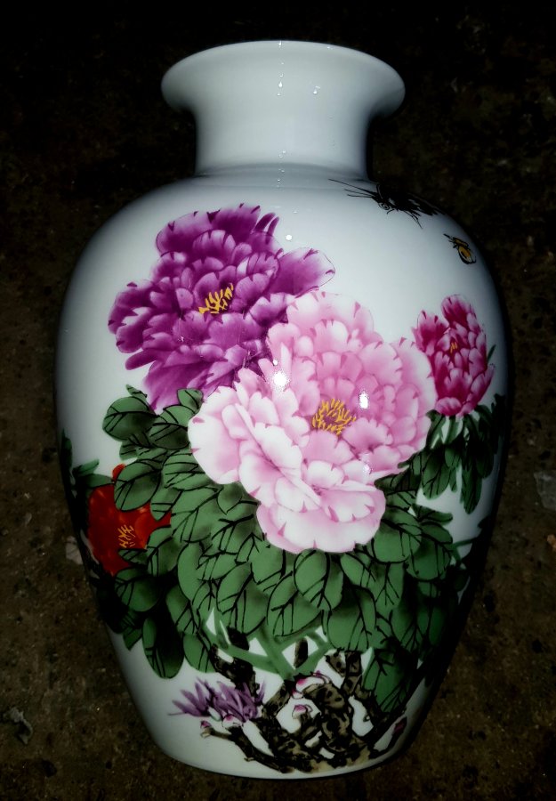 Bình hoa xưa vẽ màu 1 mặt vẽ hoa 1 mặt thư pháp.Bình cao tổng thể 32cm. miệng 12cm. vòng bụng 70cm. lành lặn.màu sắc hài hòa rất đẹp , đáng chơi đáng sưu tầm. GL950k