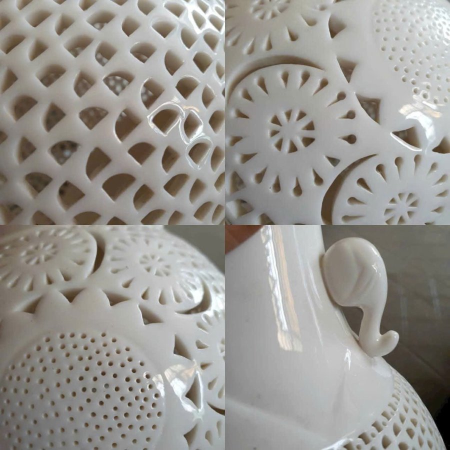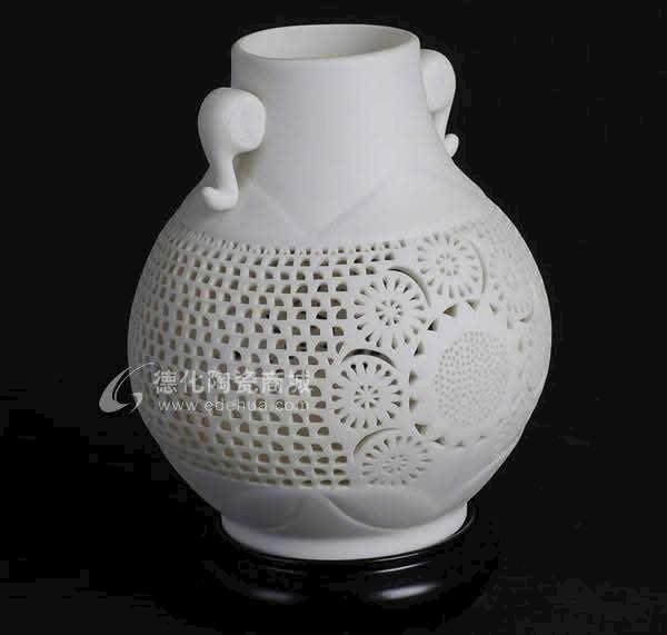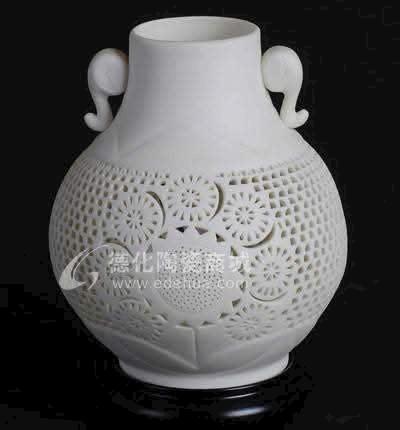 Bình lộng (thông) hoa:"Song Tượng Tranh Nhan"Chuẩn dòng Định Diêu đất sét sứ trắng ngà (Trần Minh Hoa tạo).Cao 20,5cm*đkm 7,5cm*vb 54,5cm.Mộc hơi nhạt.