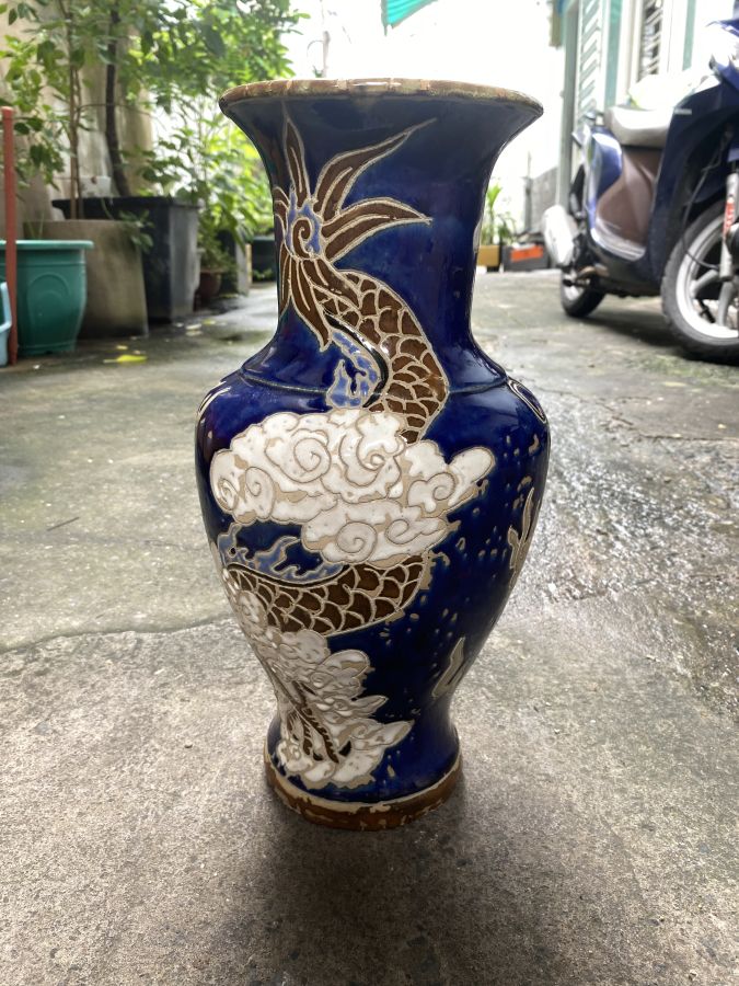 Giá Bán : 650.000 vnd Chỉ Giao Tại Saigon Bình Hoa Biên Hoà , Hoạ tiết Long Vân Kt : 40cm , Miẹng 15cm Tình trạng Lành lặn Nguyên Vẹn 0913175933