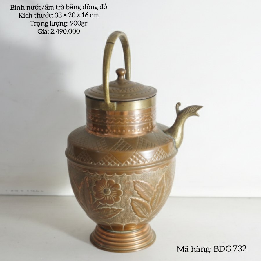 Bình nước/ấm trà bằng đồng đỏ. Bên trong lớp thiết còn mới.