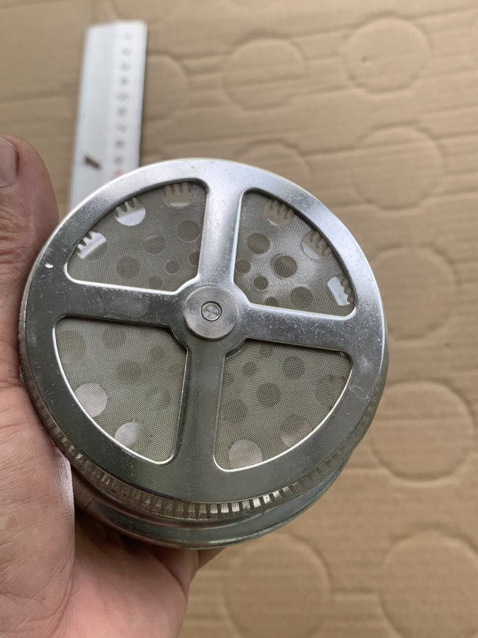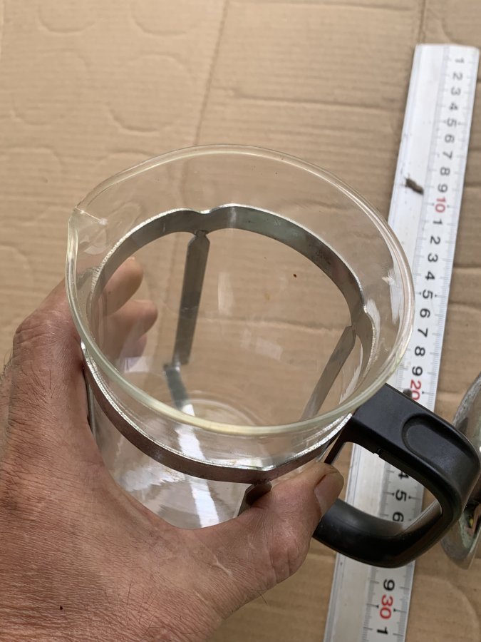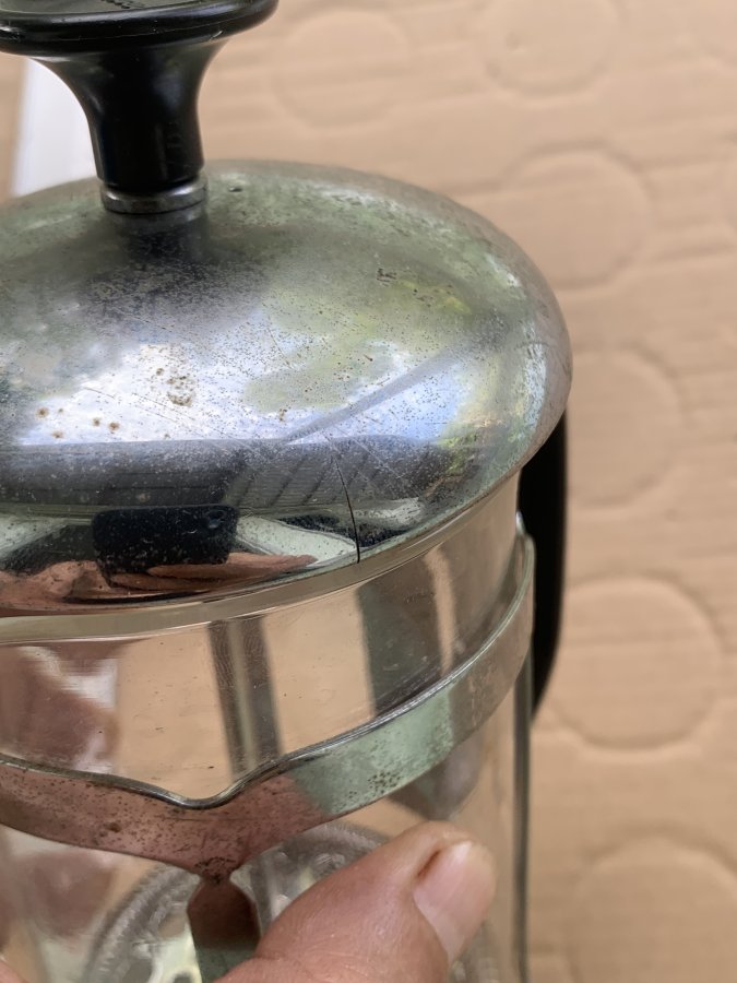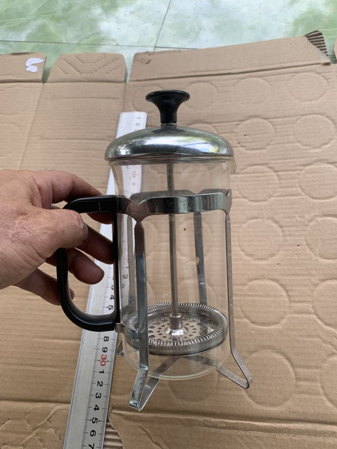 Sản phẩm theo phong cách của Pháp còn lành nguyên rất mới, cối thuỷ tinh, nắp thép trắng bị nứt nhẹ 2 chỗ nhưng không ảnh hưởng đến việc sử dụng, ron cối còn như mới. Dung tích 600ml. Cám ơn đã xem tin.