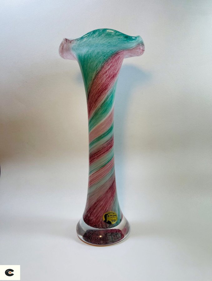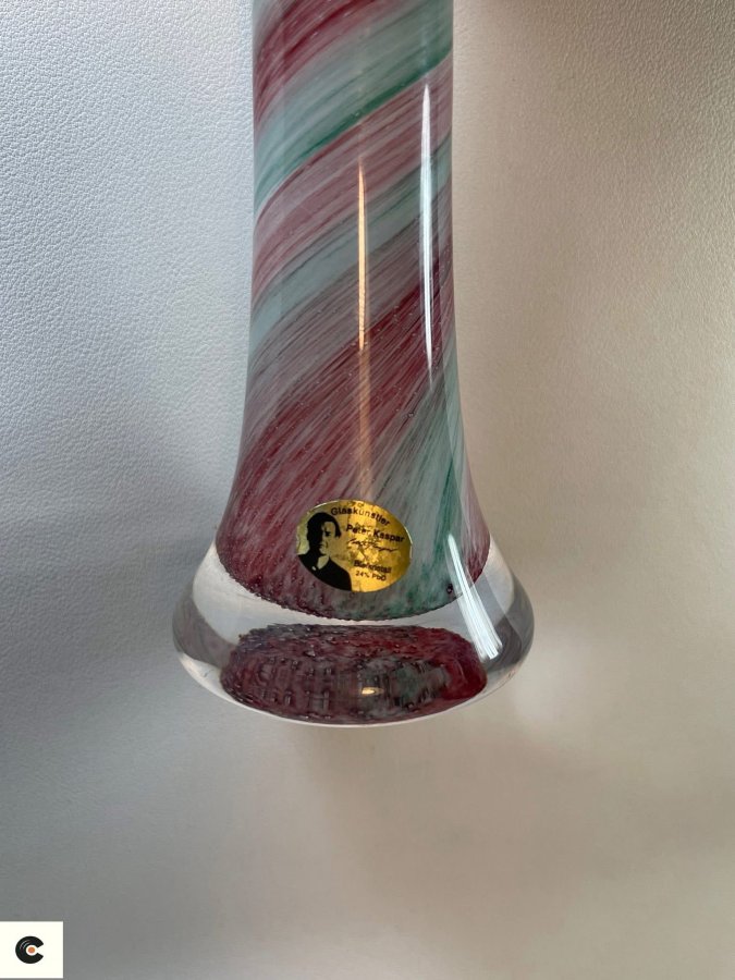 ❎Vintage retro mid century design German 70s Crystal glass 24% Pro mouth blew and hand paint vase from Peter Kaapar rarity collection.