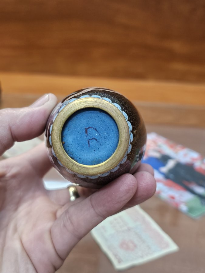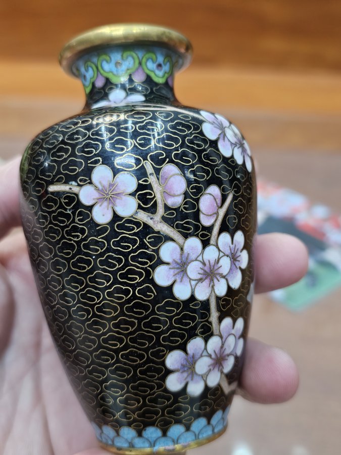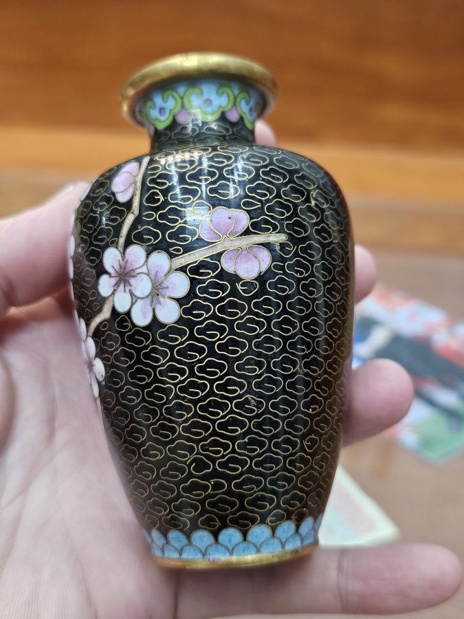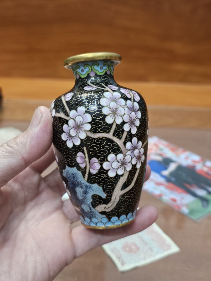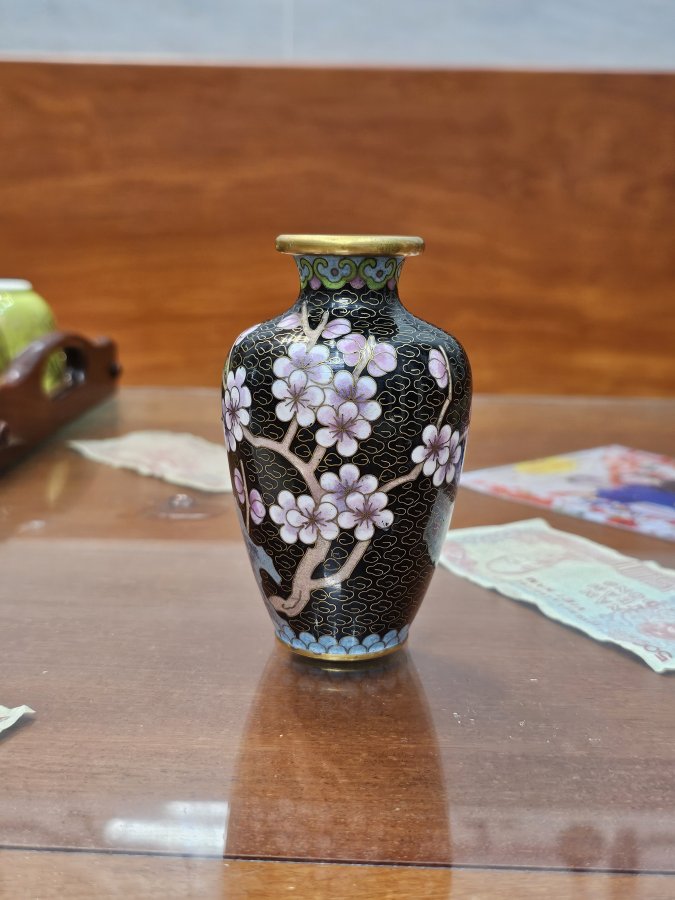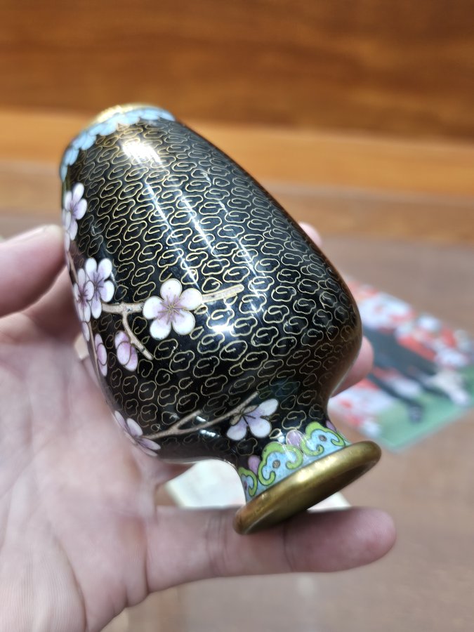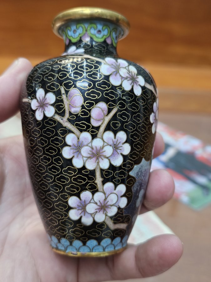 Bình Pháp lam cổ xưa được chế tác thủ công giữa đồng và men cao 10,5cm đẹp