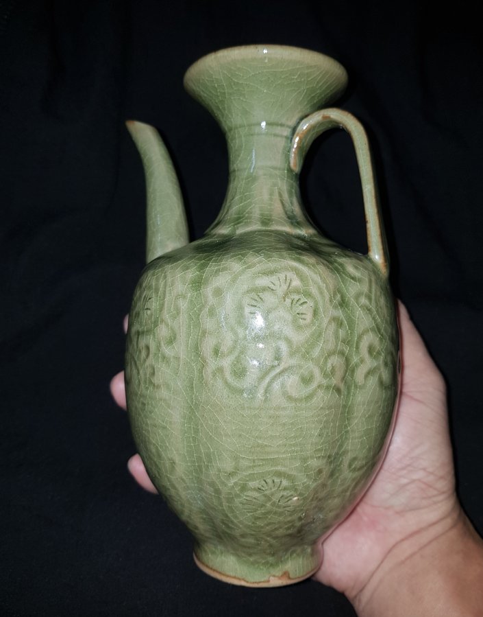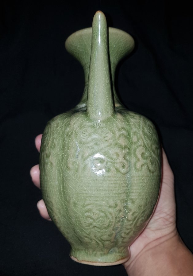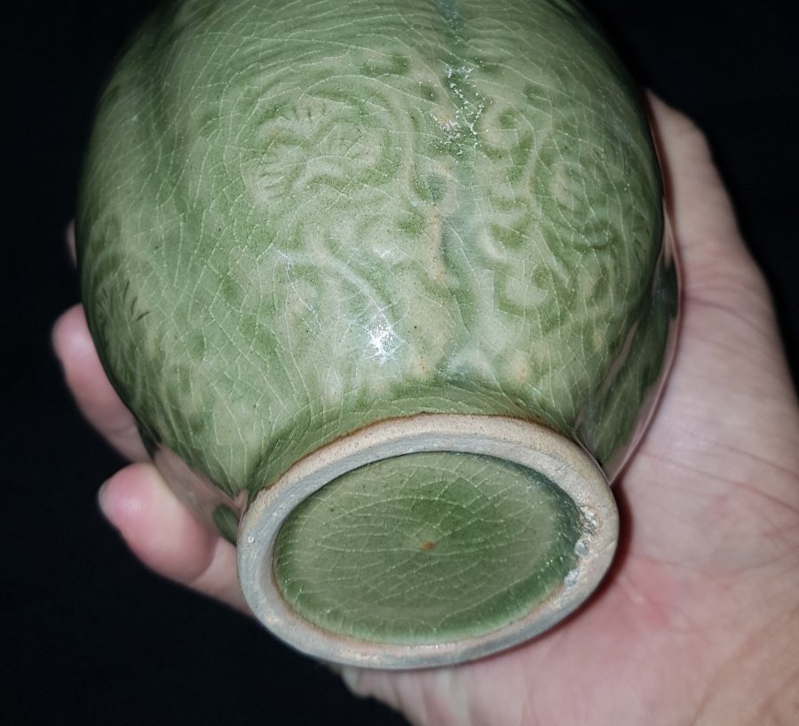 Bình R.ượu Long Tuyền sứ ám họa họa tiết cung đình cao tổng thể 20.5cm. vòng bụng 37cm.lành lặn. GL2250k