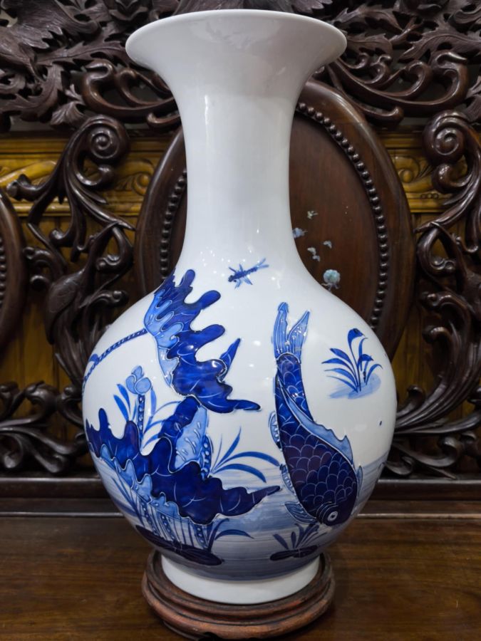 Đắp khắc nổi Sen Cá sống động như thật . Men mục xanh mưót .