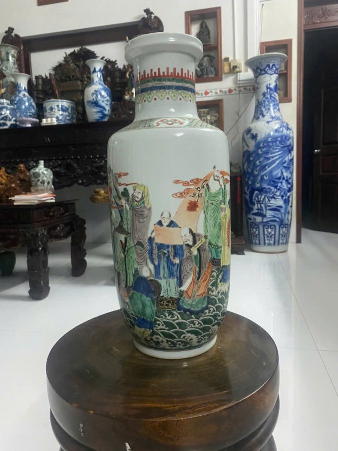 Bình tàu xưa dán gu lô vẽ tuyệt đẹp cao 45cm