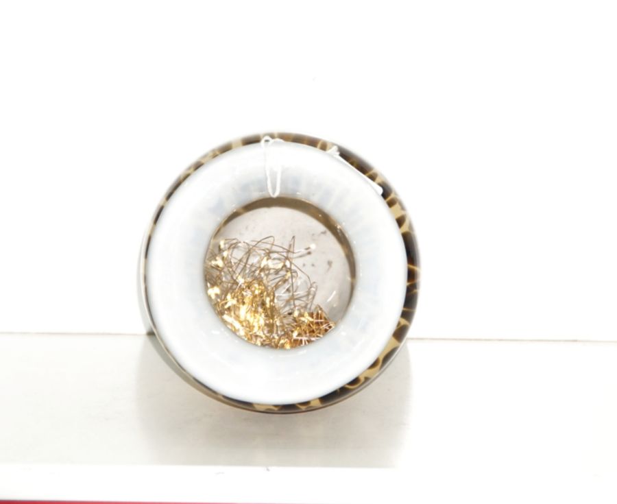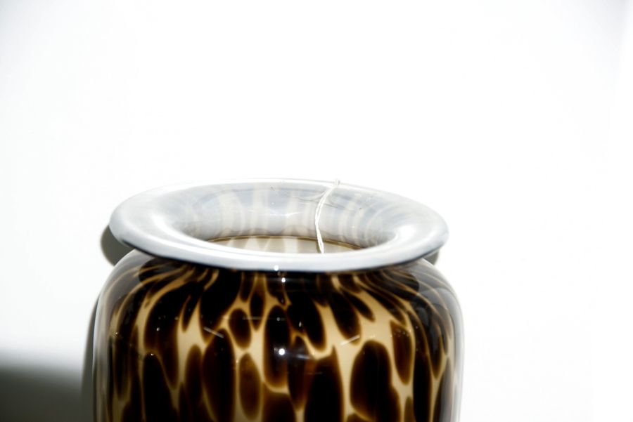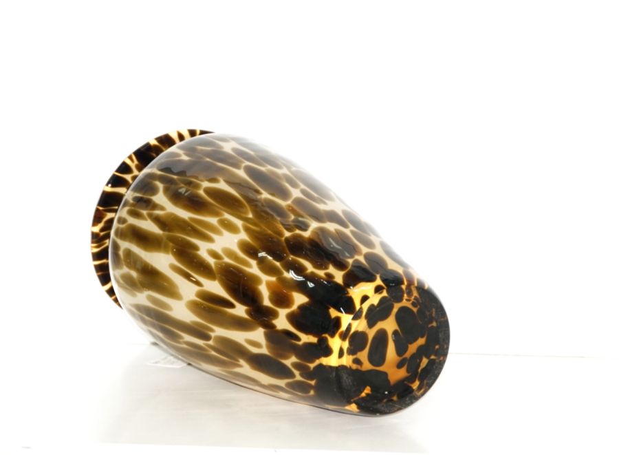 Bình thủy tinh nghệ thuật.đốm hổ phách. Made in POLAND (Ba lan).Kích thước:.Cao 27.5 cm.Rộng 15 cm.Miệng 14 và 8 cm.Trọng lượng: 1.7kg.Giá: 1.290.000