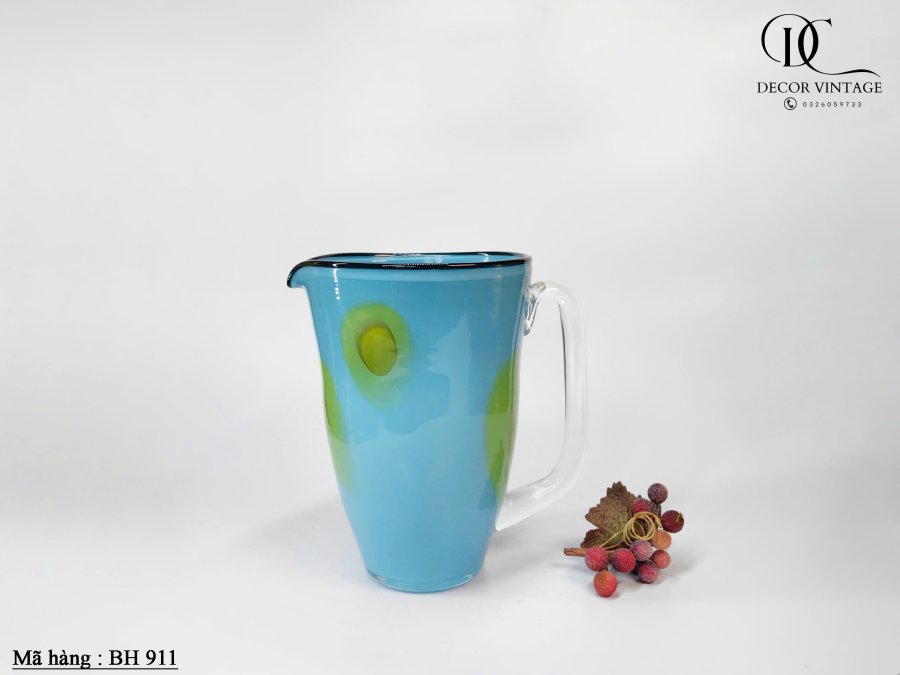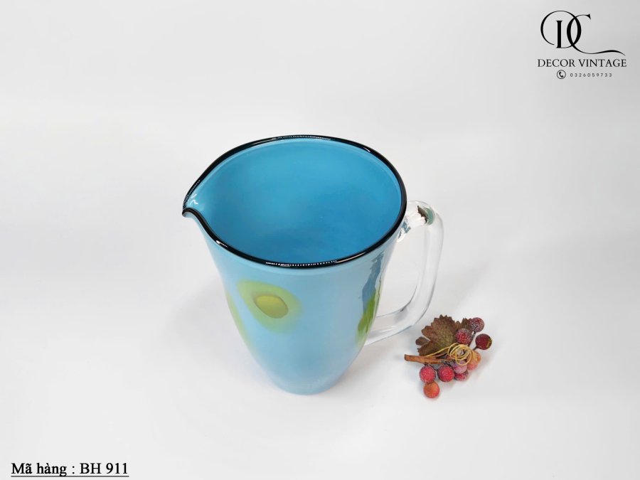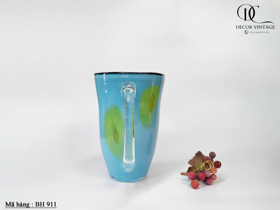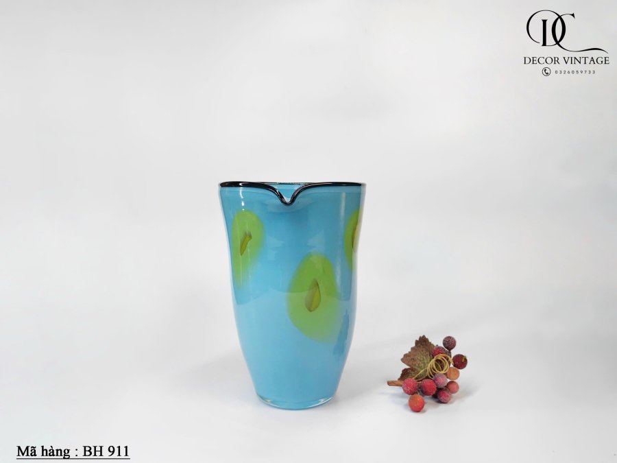 Bình Thủy Tinh Nghệ Thuật Thổi Thủ Công – Màu Xanh Viền Đen
