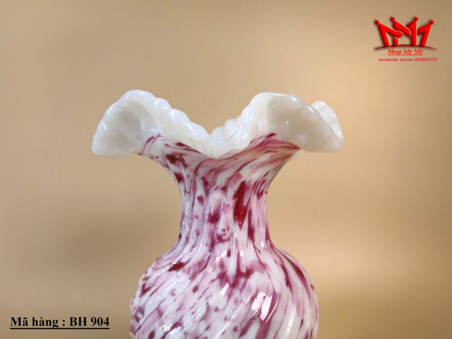Đây là một chiếc bình thủy tinh nghệ thuật cổ điển với những mảng màu nam việt quất xoáy và mép uốn lượn tuyệt đẹp.