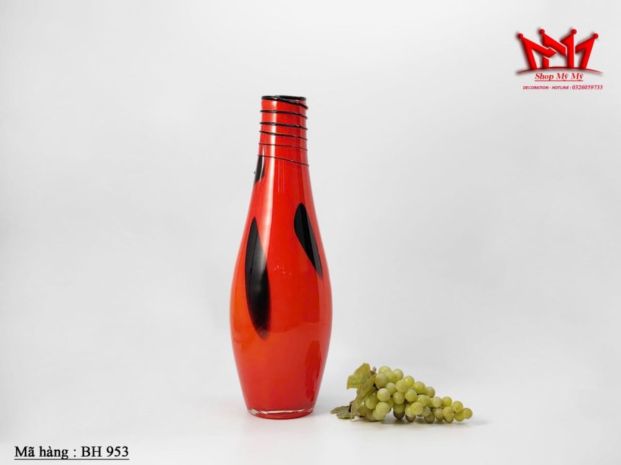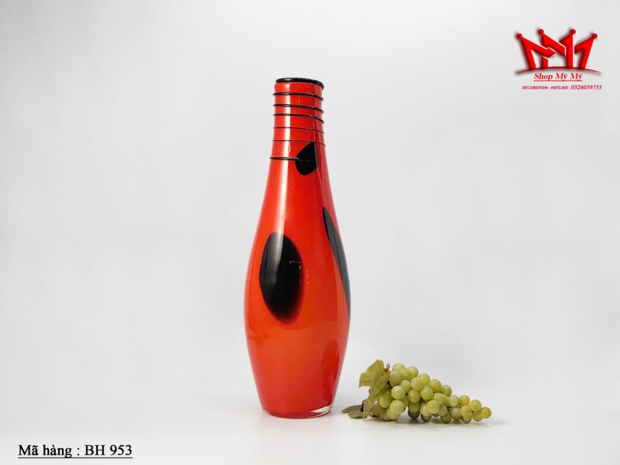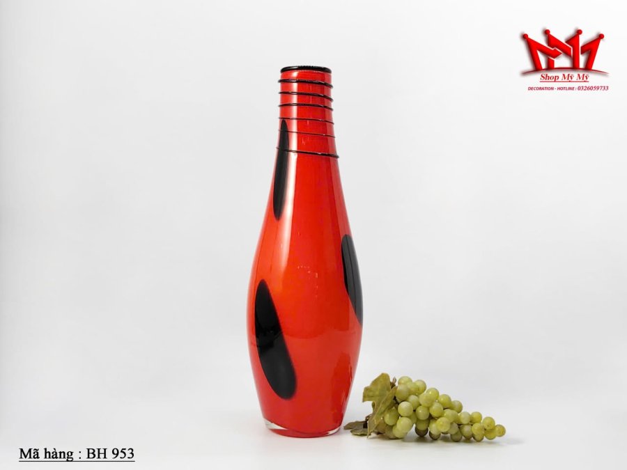 BÌNH THỦY TINH TRANG TRÍ NGHỆ THUẬT HỌA TIẾT ĐỐM ĐEN NỔI BẬT TRÊN NỀN ĐỎ