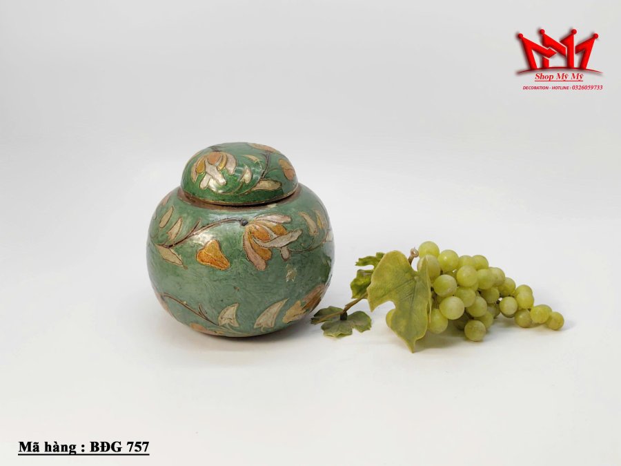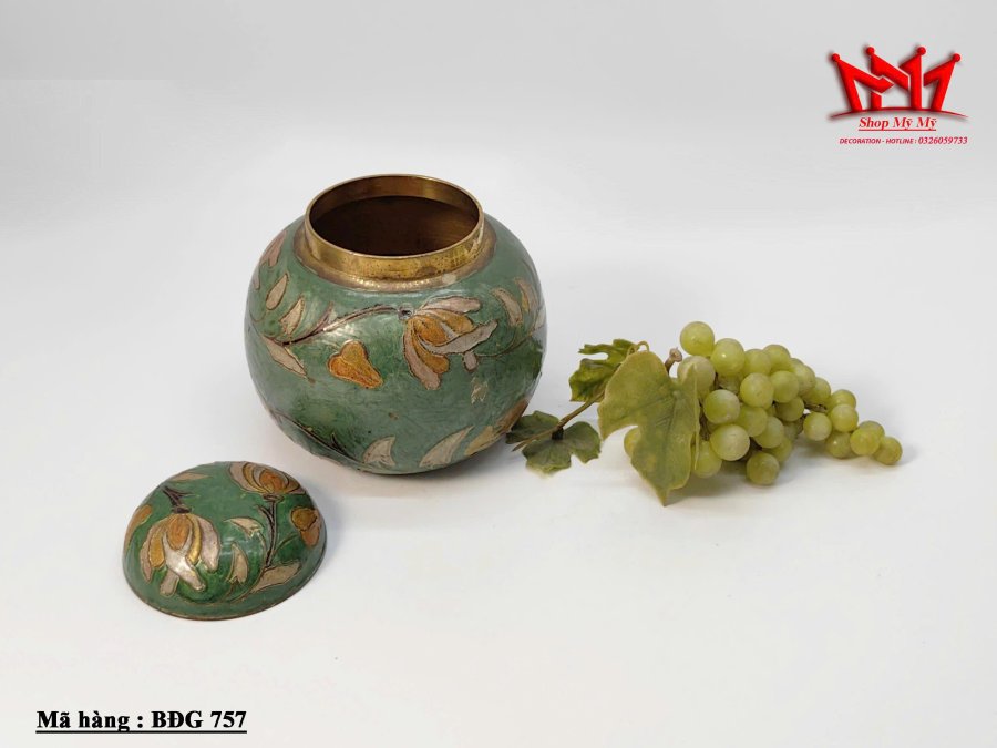 Bình trang trí bằng đồng có nắp đậy hoạ tiết bông hoa