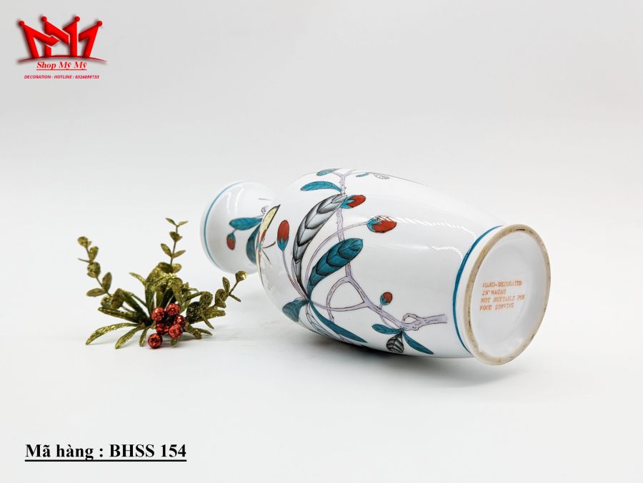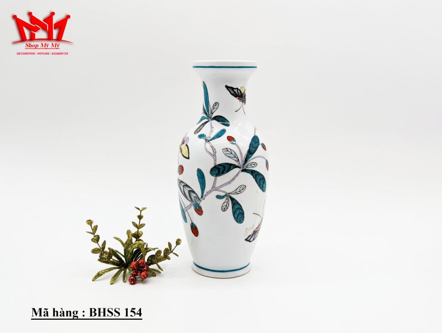 Bình trang trí chất liệu sành sứ họa tiết bướm hoa (154) Kích thước: cao 26cm, rộng 11cm Trọng lượng : 700gr Giá : 790.000 đ SDT liên hệ tư vấn : 0326059733 Địa chỉ : Shop Mỹ Mỹ. 91 Phan Đình Phùng. P1. Đà Lạt. Website : Trangtrimymy.com