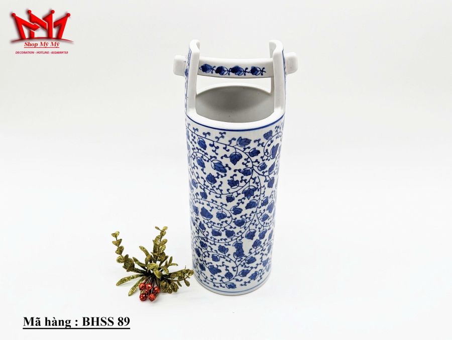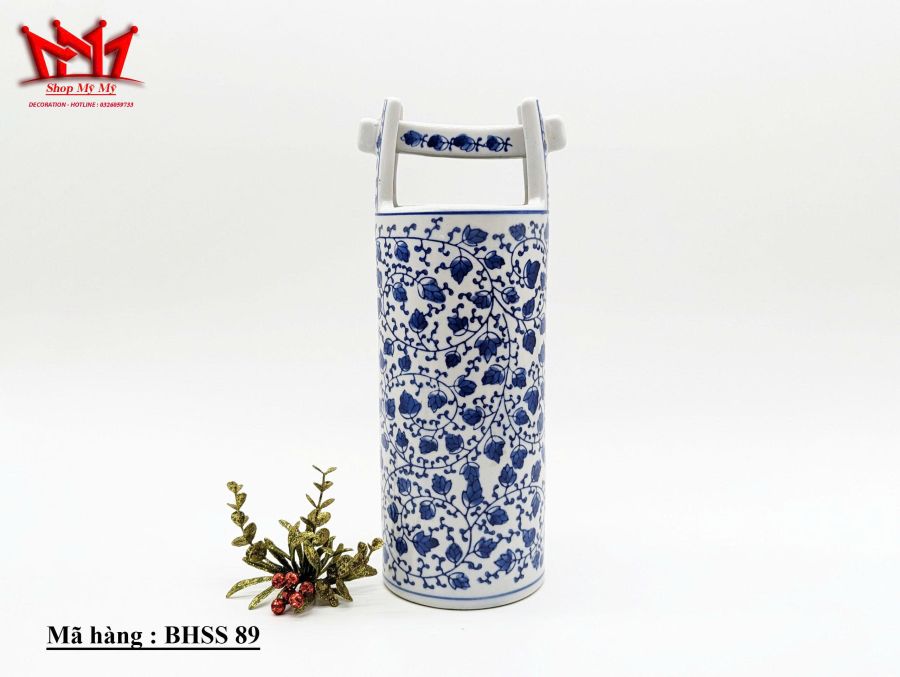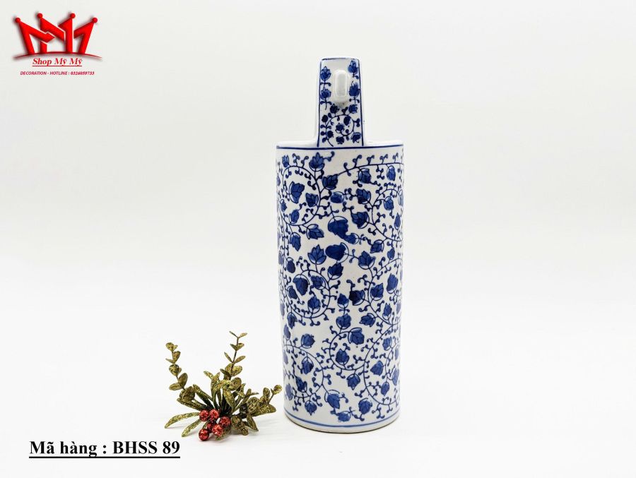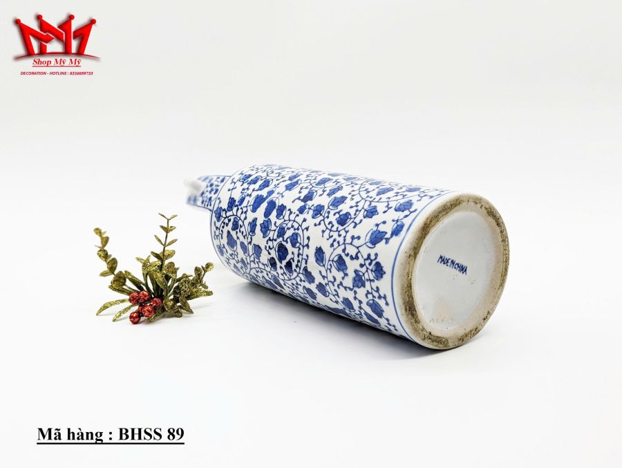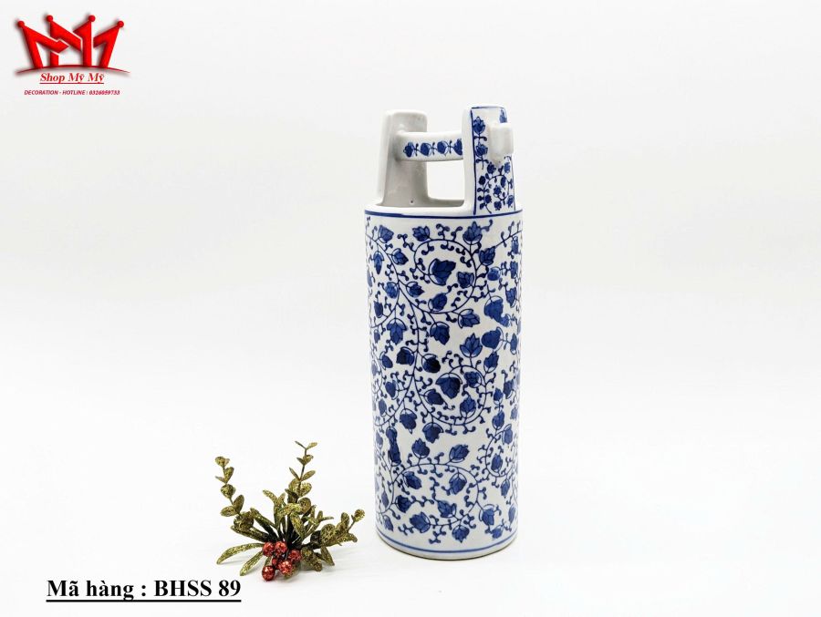 Bình Trang Trí Sành Sứ Họa Tiết bông hoa xanh