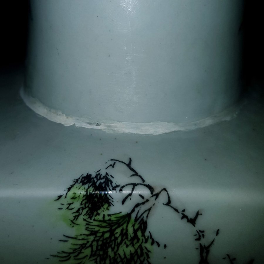 + Tình trạng : phần nối giữa vai vuông và cổ tròn có lỗi lò , đã được người xưa gia cố như hình.