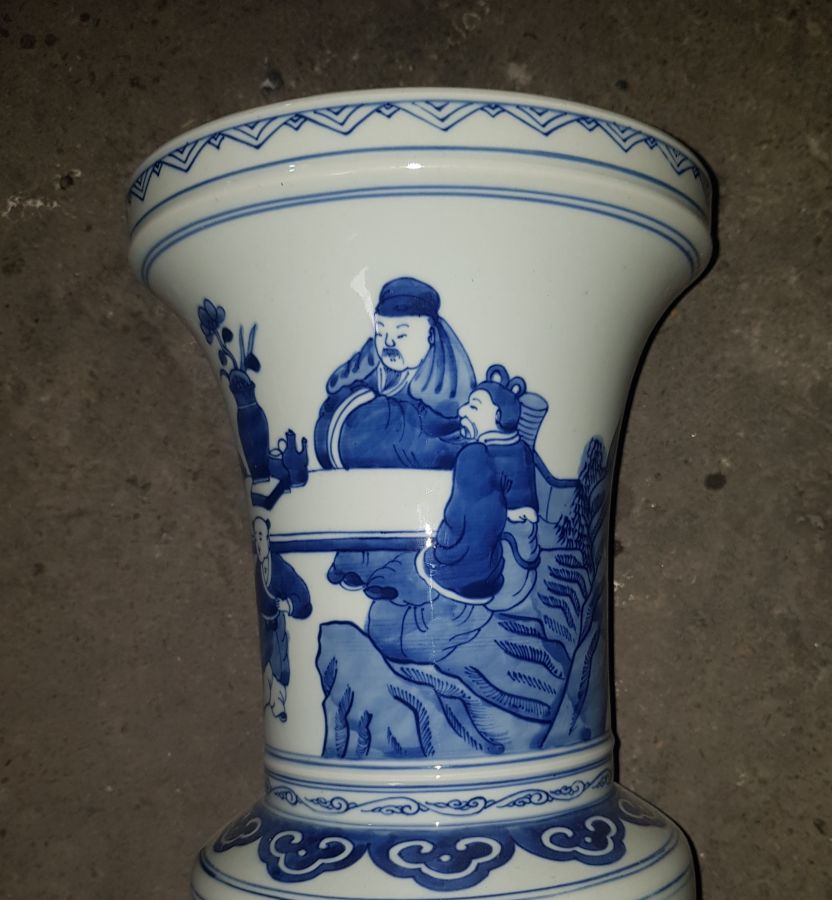 Bình vẽ người sứ men lam dáng hiếm gặp. Bình cao tổng thể 41cm. lành lặn. GL2950k