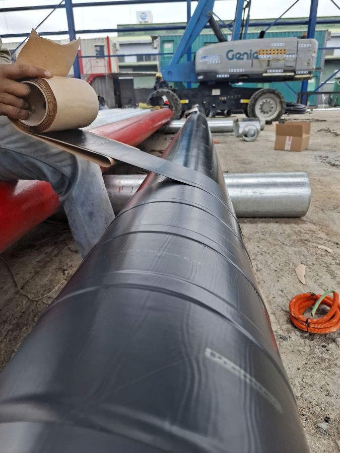 Bitum tape quấn chống ăn mòn đường ống.