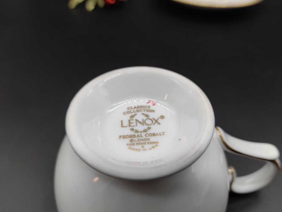 Bộ 10 set trà sứ Lenox Federal Cobalt Gold Xuất xứ : Mỹ Kích thước : cao 8cm, rộng miệng 9cm Thương hiệu ; Lenox Giá : 5.000.000 đ/ 10 set SDT liên hệ : 0326059733 Địa chỉ : Trang trí Mỹ Mỹ. 91 Phan Đình Phùng. P1. Đà Lạt